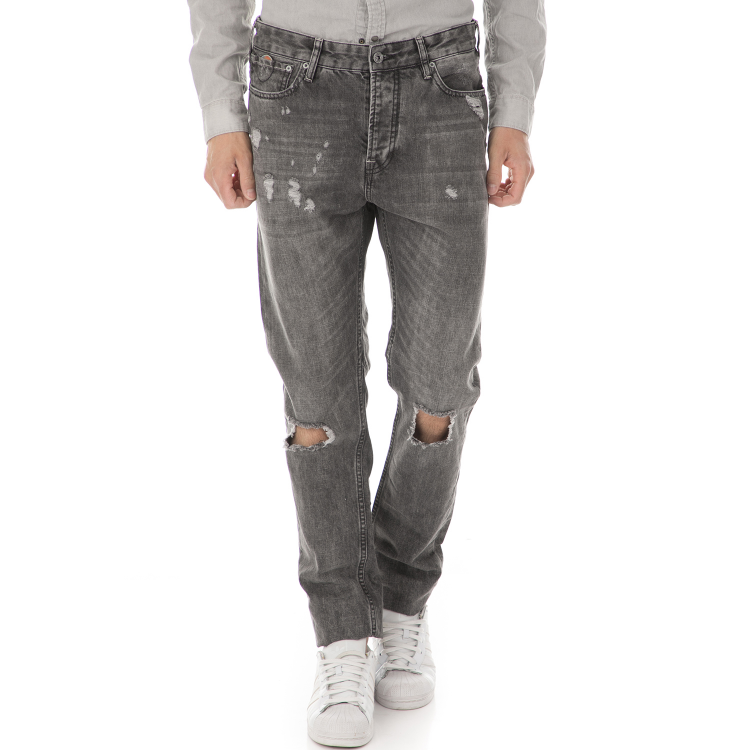 Ανδρικό τζιν παντελόνι σε σκούρη γκρι απόχρωση με φαρδιά γραμμή και σκισίματα στα γόνατα. Ένα μοντέρνο κομμάτι που θα φορέσεις από το πρωί μέχρι το βράδυ.