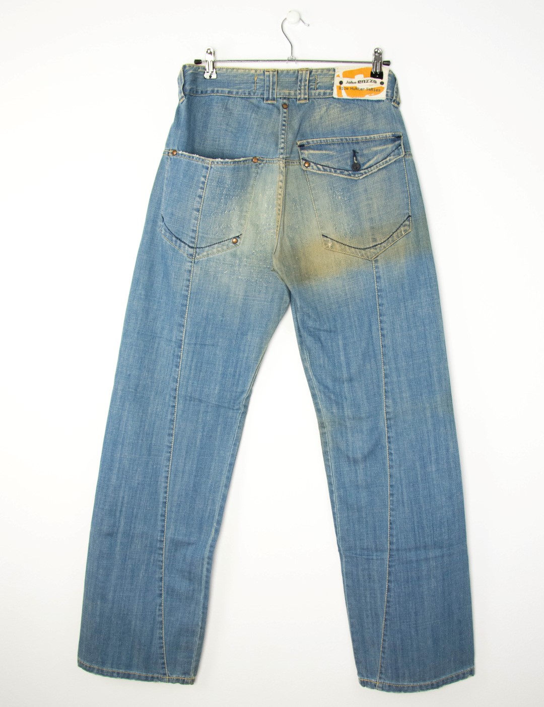 Ανδρικό τζιν παντελόνι ξεβαμμένο και με ελαφριές φθορές. Σχεδιαστικές οι μπροστινές και οι πίσω τσέπες. Κλείνει με κουμπί και φερμουάρ. Η γραμμή του είναι ίσια και το τελείωμα του καμπάνα. ΣΥΝΘΕΣΗ: 100% cot.