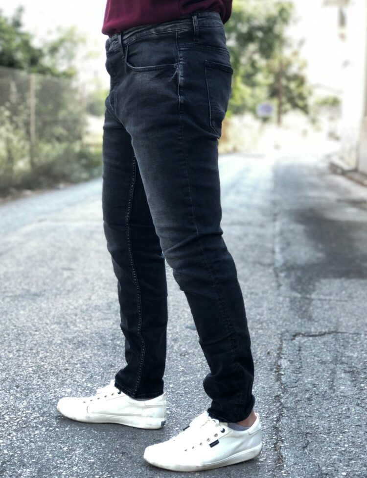 Ανδρικό μαύρο τζιν παντελόνι με ξεβάμματα