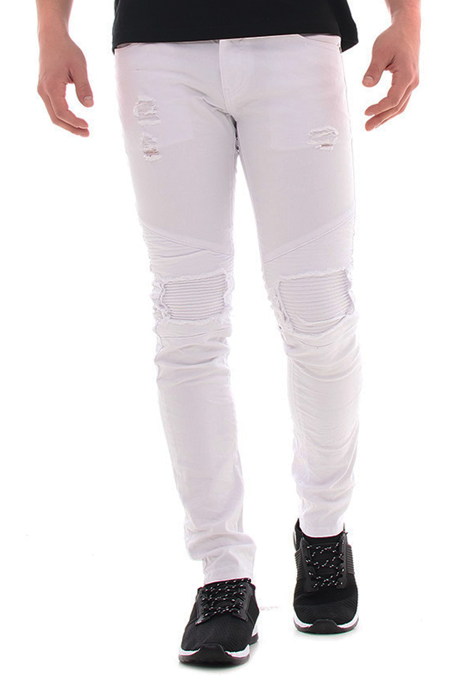Ανδρικό Jean Παντελόνι Yes Design White σε άσπρο χρώμα. Διαθέτει τέσσερις τσέπες εκ των οποίων οι δύο βρίσκονται στο πίσω μέρος, καθώς κι ένα μικρότερο τσεπάκι επάνω από την δεξιά τσέπη. Επίσης, διαθέτει και στα δύο πατζάκια τεχνητές φθορές. Τέλος, κουμπώνει με πατιλέτα με φερμουάρ και μεταλλικά κουμπιά τρουκ. Μπορεί να φορεθεί όλες τις ώρες της ημέρας συνδυάζοντας το με t-shirt ή polo δημιουργώντας ένα casual outfit.