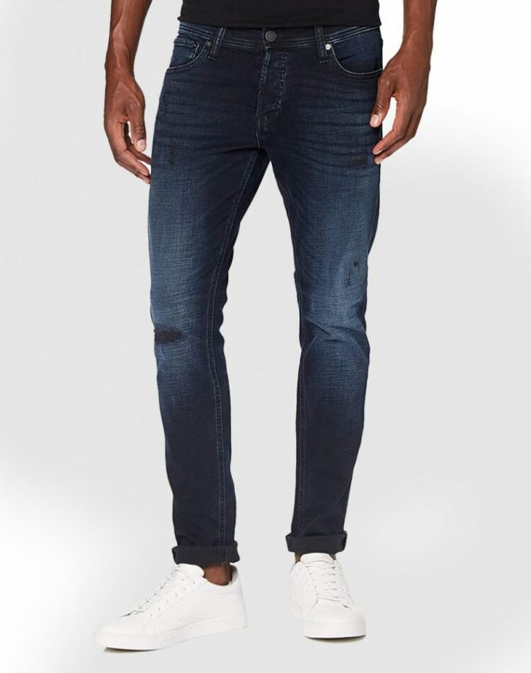 Ανδρικό τζιν Jack & Jones Τεχνολογία Super Stretch Άνετο και πρακτικό Κλασσικό πεντάτσεπο με σκισίματα Έχει ελαστικότητα Slim fit Σας προτείνουμε να πάρετε το κανονικό σας νούμερο Όλοι οι άνδρες χρειαζόμαστε ένα κλασσικό ποιοτικό μπλε τ