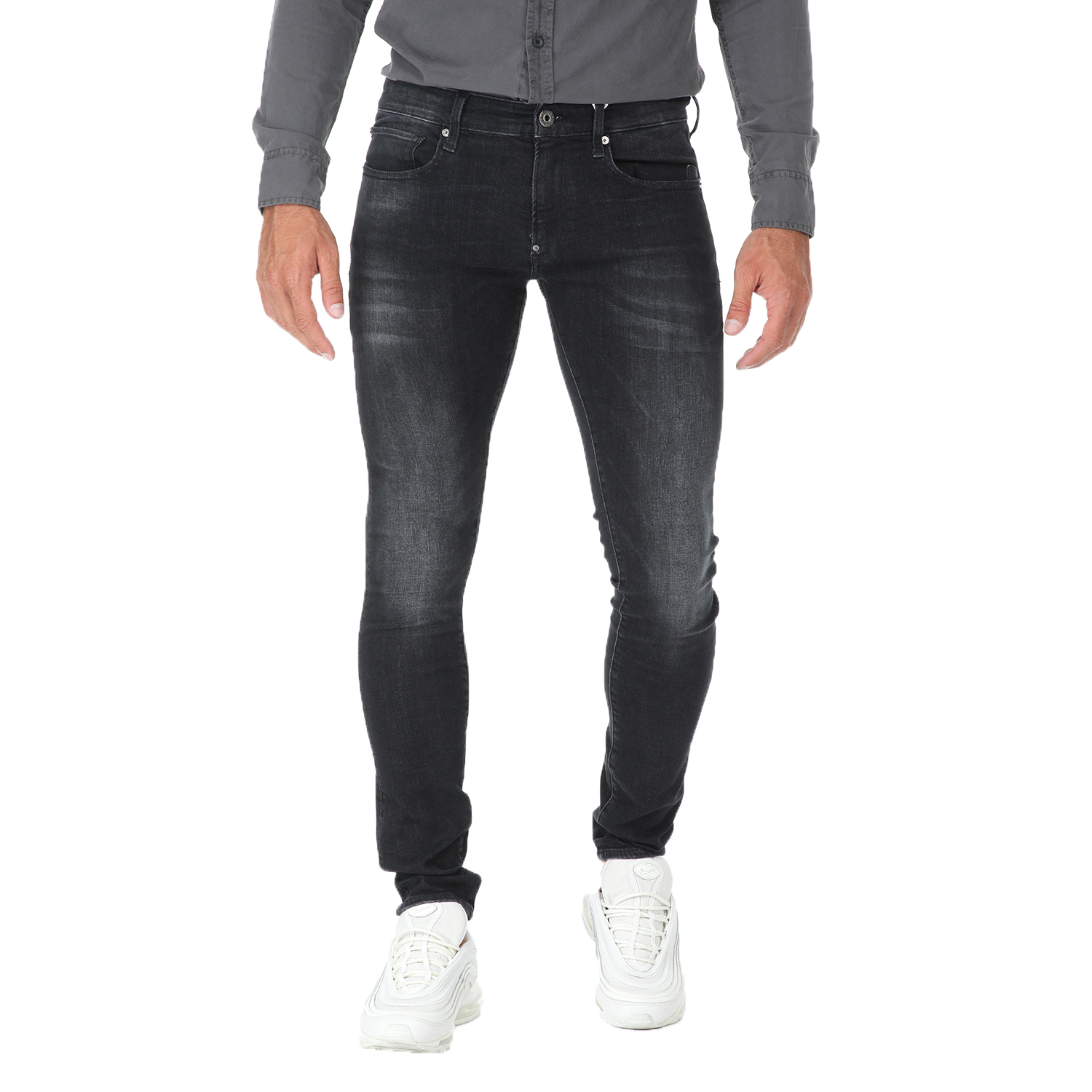 Ανδρικό jean παντελόνι G-STAR RAW σε γκρι απόχρωση. Από βαμβακερό denim, σε skinny γραμμή. Διαθέτει δύο τσέπες στα πλάγια και δύο τσέπες πίσω. Κλείνει με κουμπιά μπροστά.