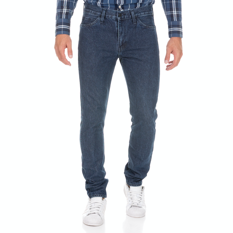 Ανδρικό jean παντελόνι LEVI’S σε μπλε απόχρωση. Είναι σε slim γραμμή, με μπατζάκια που στενέυουν προς τα κάτω. Σε στιλ πεντάτσεπου με τσέπες μπροστά και πίσω. Δερμάτινη ετικέτα με το λογότυπο πίσω στην μέση. Κλείνει με μεταλλικά κουμπιά μπροστά.