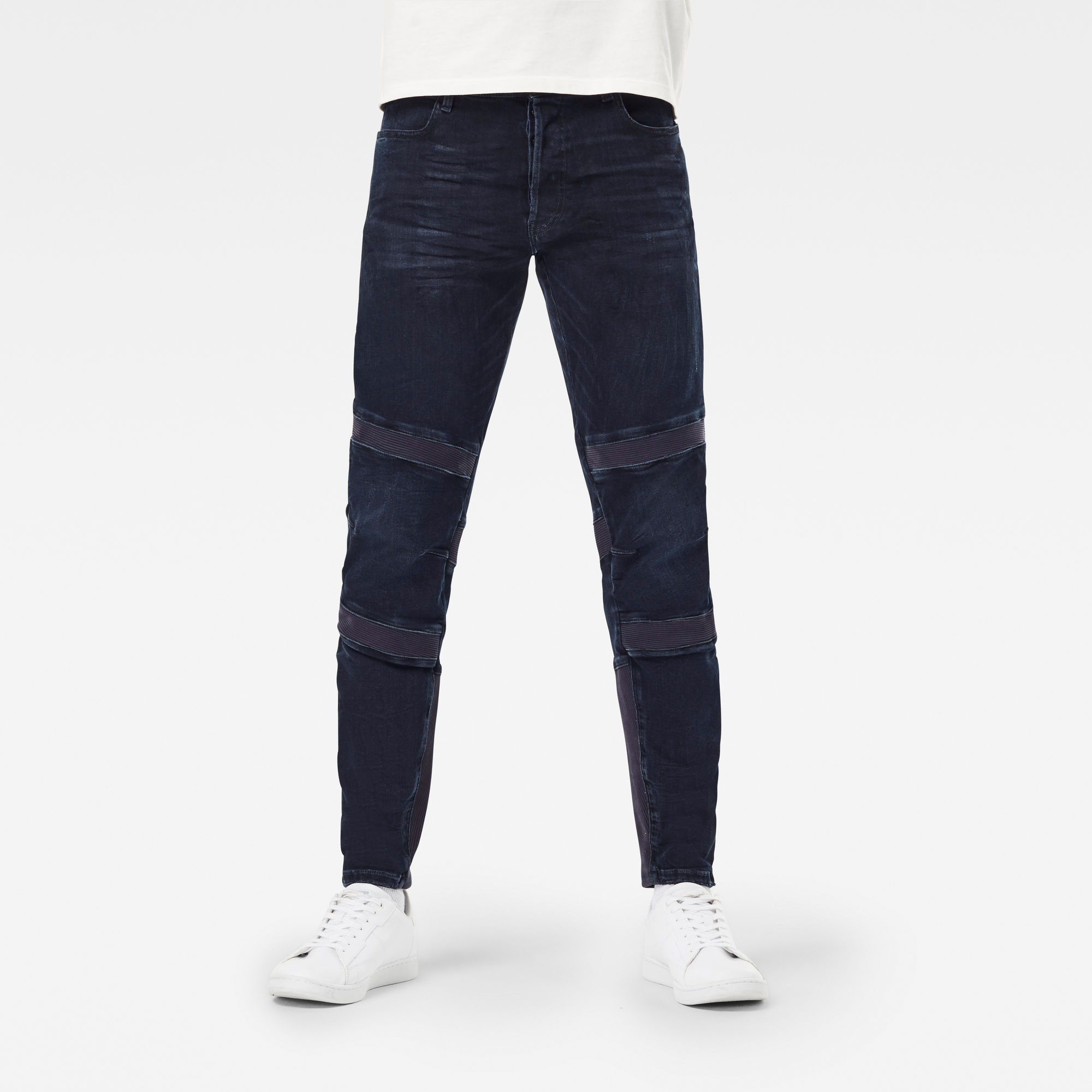 The integrated rib panels allow for unrestricted movement. Additional seams at the knees create an ergonomic fit. Mid waist,5-pocket construction,Ribbed inset panels at upper and lower front leg,Cow leather label at the waistband This jeans is cut from an indigo blue stretch woven denim with a subtle black coated surface. Offering a unique black-blue optic with a sheer lustre. Elastane adds to the comfortable wear. Stretch woven denim, deep two tone colorway,Mid weight 10.6 oz denim, 3×1 right hand twill construction,High stretch and recovery,Pre-reduced Dystar®. This Indigo technology holds a Gold Level Material Health Certificate from the Cradle to Cradle Products Innovation Institute.,98% Cotton, 2% Elastane,By buying cotton products from G-Star RAW Raw, you're supporting more sustainable cotton farming.