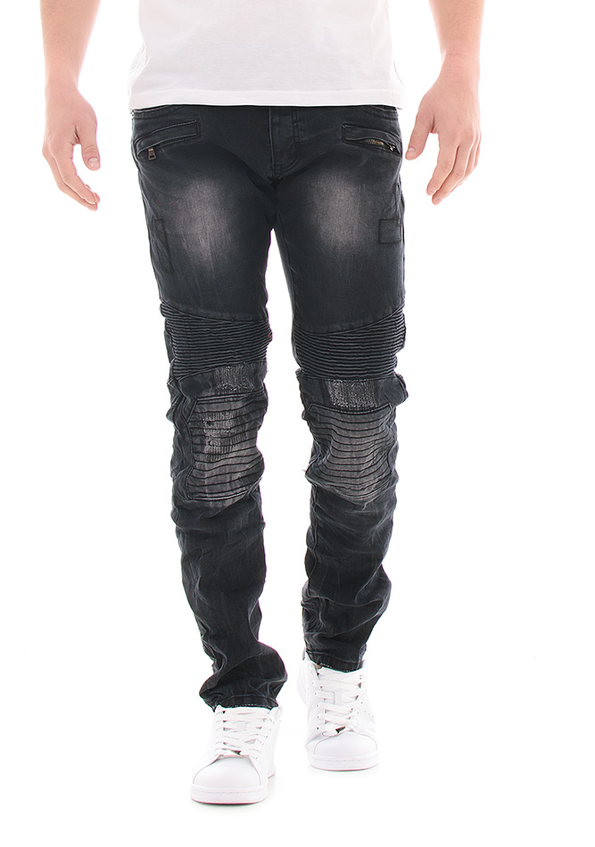 Ανδρικό Jean Justing Work σε μαύρο χρώμα. Διαθέτει τέσσερις τσέπες εκ των οποίων οι δύο βρίσκονται στο πίσω μέρος. Επίσης, διαθέτει κι ένα μικρότερο τσεπάκι επάνω από την μπροστινή δεξιά τσέπη καθώς και από ένα διακοσμητικό φερμουάρ κάτω από την κάθε μπροστινή τσέπη. Επίσης, διαθέτει ξεβάμματα και σχέδια στα πατζάκια. Τέλος, κουμπώνει με μεταλλικά κουμπιά τρουκ. Μπορείς να το συνδυάσεις με t-shirt ή polo δημιουργώντας ένα casual look κατάλληλο για όλες τις ώρες της ημέρας.