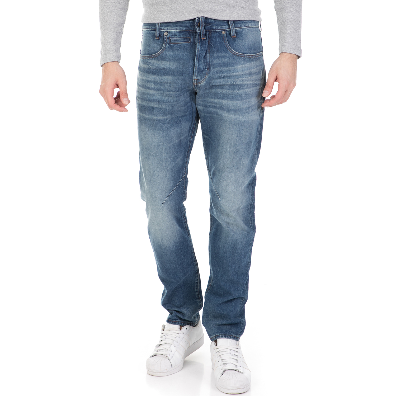 Ανδρικό τζιν παντελόνι σε μπλε απόχρωση με ξεβάμματα, κανονική εφαρμογή και μοντέρνα γραμμή. Συνδύασέ το με t-shirt και sneakers για άψογο στιλ!