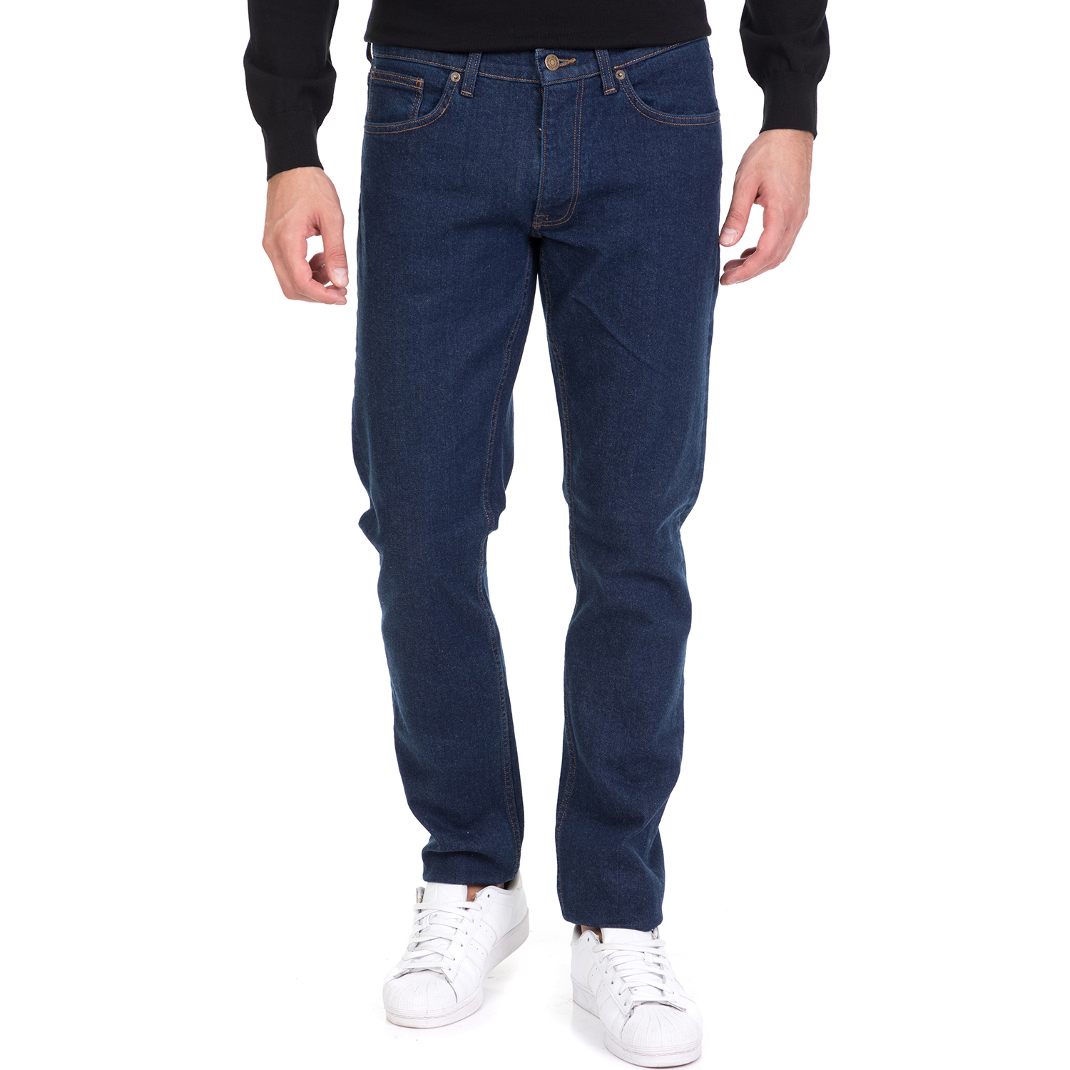 Ανδρικό τζιν παντελόνι σε μπλε απόχρωση και ίσια γραμμή. Έχει κλασικές τσέπες μπροστά και πίσω. Κλείσιμο με φερμουάρ και κουμπί. Διαχρονικό κομμάτι, ιδανικό για όλη μέρα.