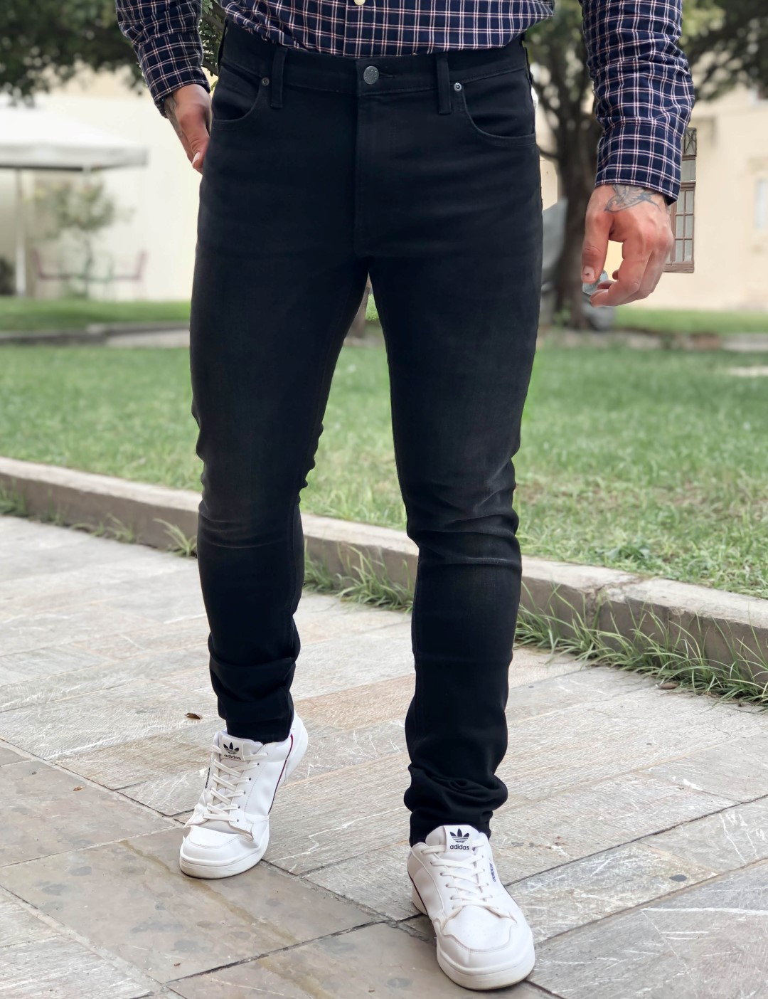 Ανδρικό μεσοκάβαλο παντελόνι της εταιρείας Lee. Σε μαύρο χρώμα, διαθέτει ελαφριά ξεβάμματα και ίσια γραμμή στο τελείωμά του. Είναι πεντάτσεπο και κλείνει με κουμπί και φερμουάρ. Κανονική προς στενή εφαρμογή Σύνθεση : 94% cotton, 4% pol, 2% el *Το μοντέλο έχει ύψος 1.85 και 90 κιλά. Φοράει μέγεθος 34 .