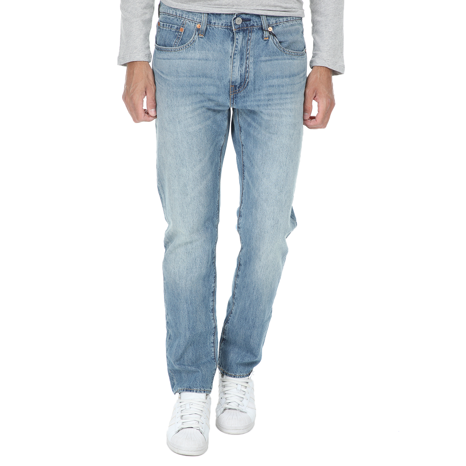 Ανδρικό jean παντελόνι LEVI’S σε μπλε απόχρωση. Από βαμβακερό denim, σε γραμμή taper με μπατζάκια που στενεύουν ελαφρώς προς τα κάτω. Διαθέτει τσέπες στα πλάγια και δύο τσέπες πίσω. Θηλάκια για ζώνη στη μέση και δερμάτινη ετικέτα με το λογότυπο. Κλείνει με κουμπί και φερμουάρ μπροστά.