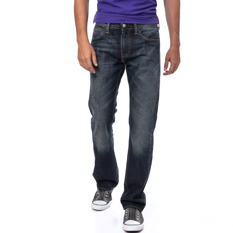 Βαμβακερό τζιν παντελόνι σε μπλε σκούρο χρώμα, με διακριτικά ξεβάμματα και τσέπες στο μπροστινό και πίσω μέρος. Εχει ίσια γραμμή.