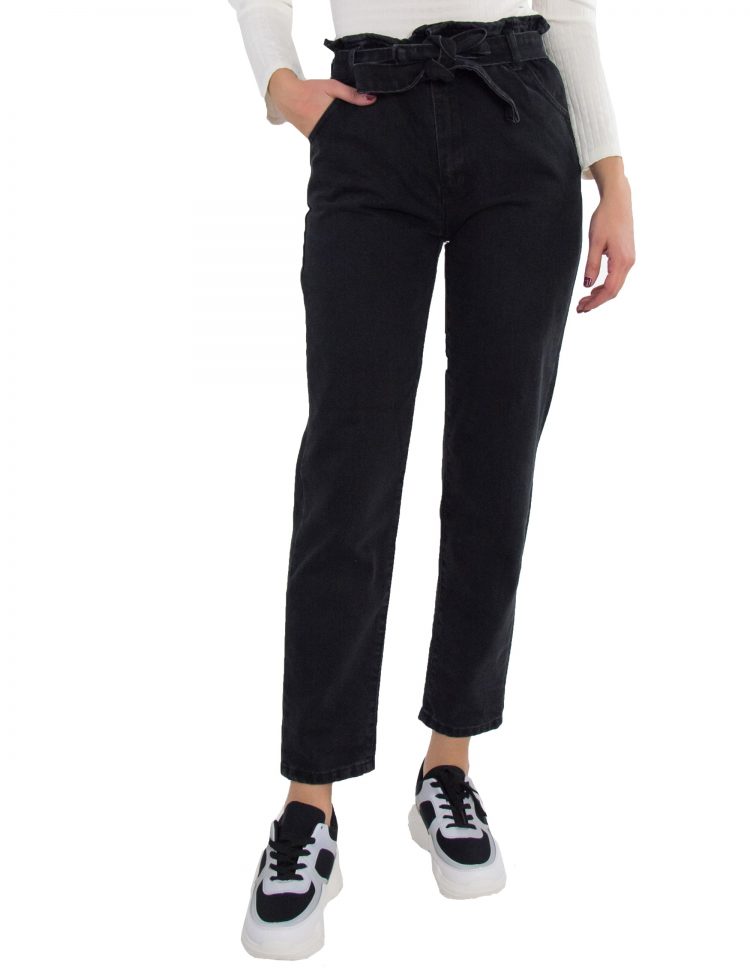 Γυναικείο μαύρο τζιν παντελόνι Mom Fit λάστιχο τσέπες