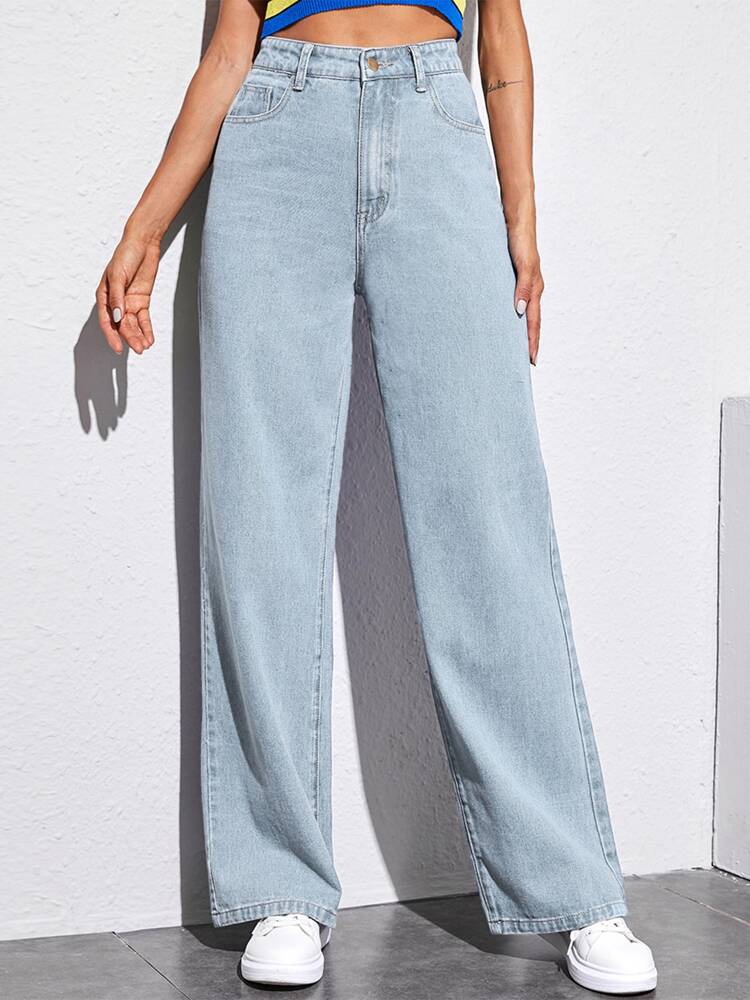 Γυναικείο Ανοιχτόχρωμο ψηλόμεσο τζιν με φαρδύ μπατζάκι