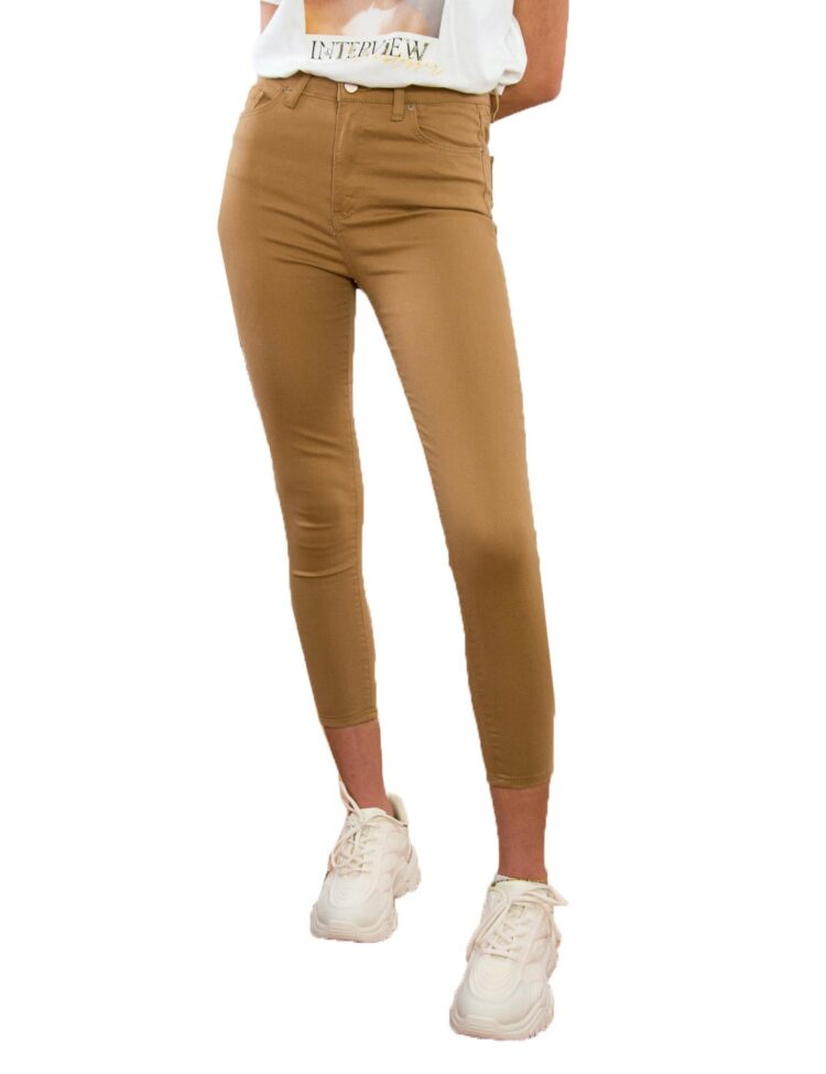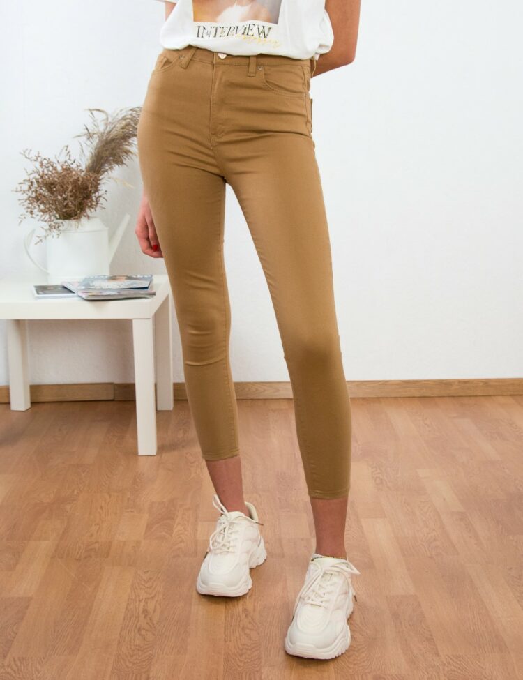 Γυναικείο καφέ ψηλόμεσο τζιν παντελόνι σωλήνας