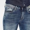 This results in a slim fit with comfort and mobility. Mid waist,Fitted waistband,Tight from top to bottom,Zip fly Versatile, high quality superstretch fabric with an authentic denim aesthetic in an indigo cast with slight black undertones. Offering superb recovery and soft handfeel. This shade is made with sustainable aniline-free pre reduced indigo technology. Midweight 10.2 oz denim, 3×1 Right hand twill construction,Reliable stretch and snap-back memory,91% Cotton, 7% Elastomultiester(T400® EcoMade), 2% Elastane (Lycra®),The LYCRA® fibers we use are high performance stretch fibers which hold a Gold Level Material Health Certificate from the Cradle to Cradle Products Innovation Institute.,Bright fresh indigo shade,By buying cotton products from G-Star Raw, you're supporting more sustainable cotton farming through the Better Cotton Initiative. Better Cotton is sourced via a system of Mass Balance. Find out more about our sustainable materials.