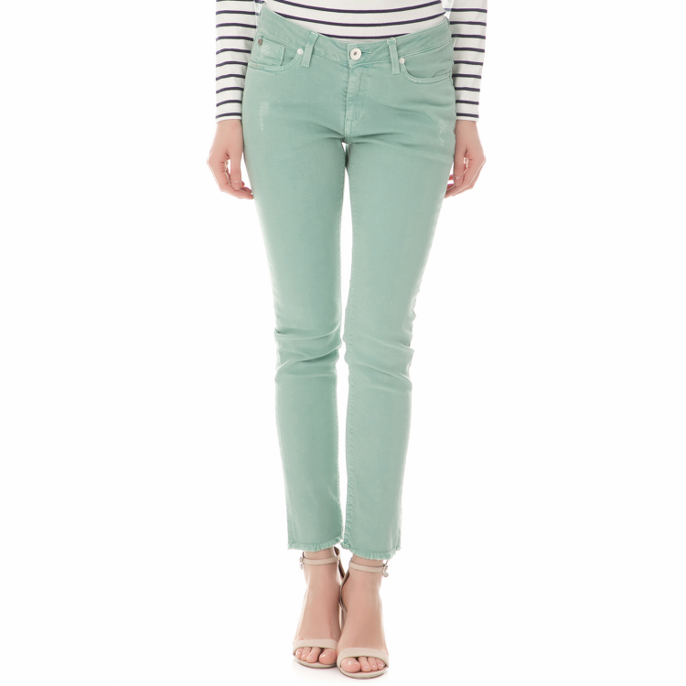 Γυναικείο τζιν παντελόνι σε πράσινη mint απόχρωση με στενή γραμμή. Ένα κομμάτι που θα συνδυάσεις εύκολα με όλα σου τα ρούχα για πρωινές εμφανίσεις.