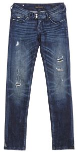Jeans STAFF σε σκούρο μπλε χρώμα, με διακριτικά ξεβάμματα, σκισίματα και μπλε ραφές.Έχει πολύ στενή γραμμή και διαθέτει κλασσικές τσέπες στο μπροστινό μέρος και δύο τριγωνικές πίσω.Κλείνει με φερμουάρ και κουμπιά και έχει θηλάκια για ζώνη κανονικού μεγέθους. Στο πίσω μέρος υπάρχει patch με το logo της εταιρείας STAFF.