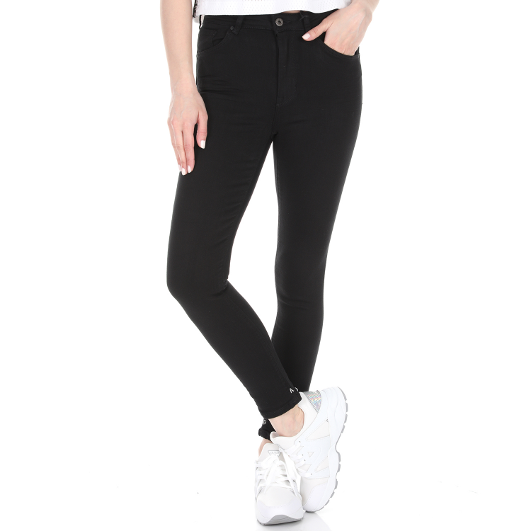 Γυναικείο jean παντελόνι SCOTCH & SODA σε μαύρο χρώμα. Με skinny εφαρμογή και ψηλή μέση. Διαθέτει δύο τσέπες στα πλάγια και δύο τσέπες πίσω. Κλείνει με κουμπί και φερμουάρ μπροστά.