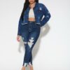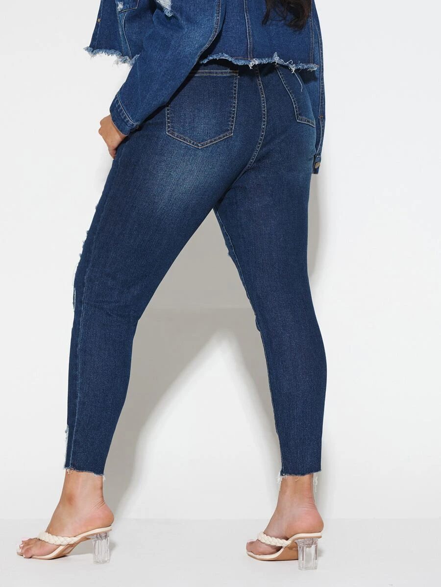 Γυναικείο Plus size, Μπλε σκούρο τζιν με σκισίματα