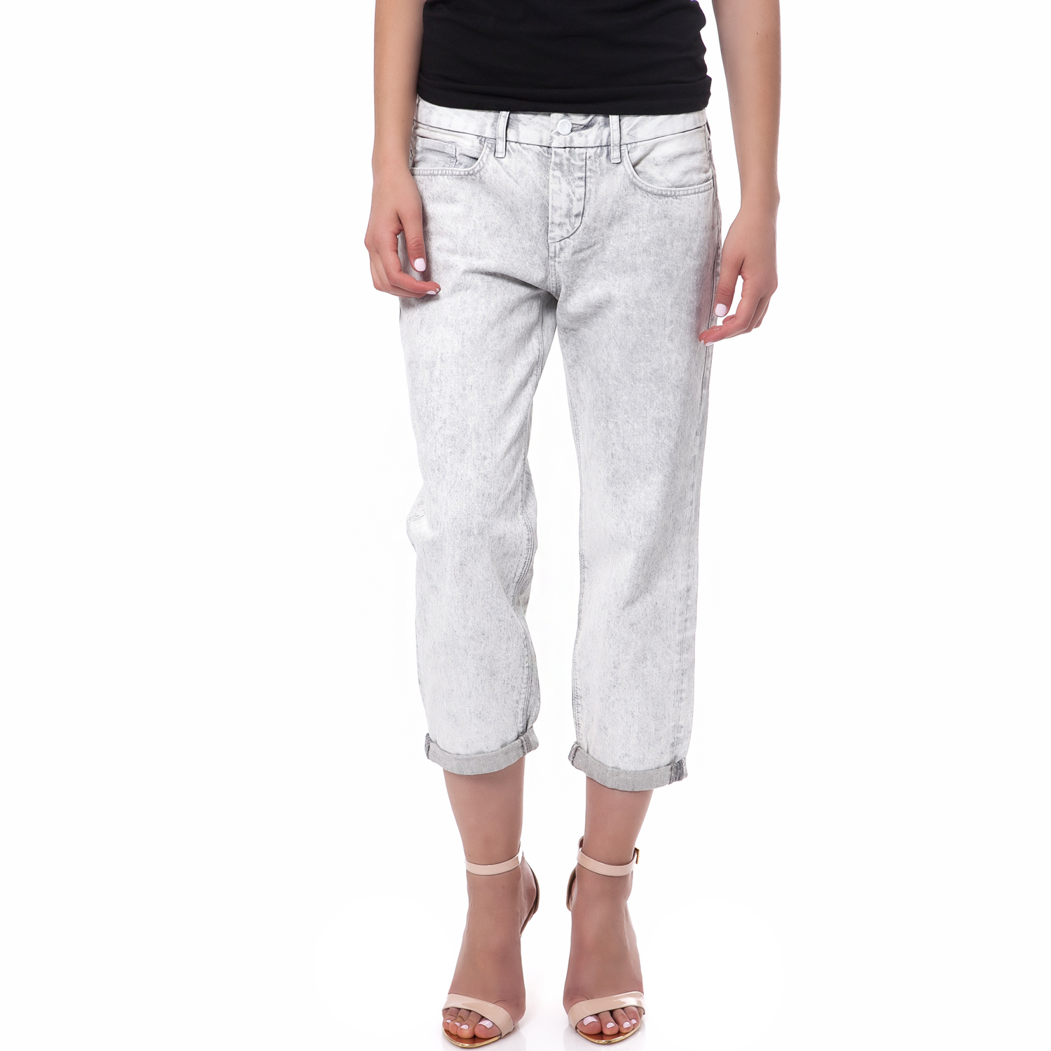 Βαμβακερό τζιν παντελόνι τύπου boyfriend με φαρδιά γραμμή σε λευκό χρώμα και γκρι λεπτομέρειες.