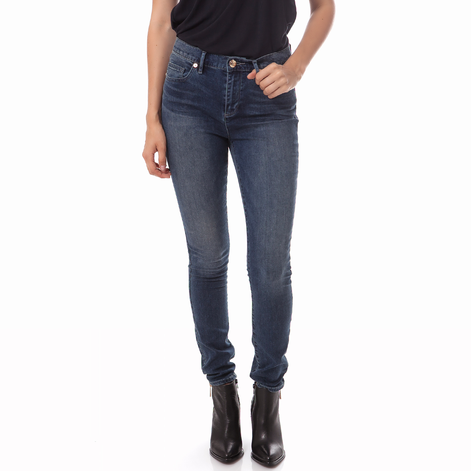 Ψηλόμεσο τζιν παντελόνι με skinny γραμμή, σε σκούρο μπλε χρώμα, διακριτικά ξεβέμματα και τσέπες στο μπροστινό και πίσω μέρος. Επιλογή που θα αναδείξει την σιλουέτα σας!