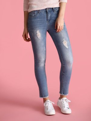 Γυναικείο τζιν παντελόνι με εκδορές και ξέφτια στο τελείωμα TOP SECRET. Κολεξιόν: Άνοιξη 2017. Χρώμα: Μπλε. Σύνθεση: 98% Βαμβάκι, 2% Ελασθάν. – Δωρεάν Αλλαγή σε περίπτωση που δεν σας κάνει το μέγεθος. – Δωρεάν Αποστολή για αγορές άνω των 39,90€.