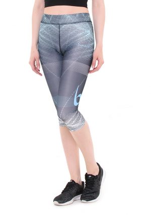 Κολάν Κάπρι Simart σε γκρι χρώμα. Διαθέτει μοντέρνο σχέδιο σε σιέλ χρώμα. Επίσης, στην μέση διαθέτει λάστιχο και τέλος είναι σε στενή γραμμή.