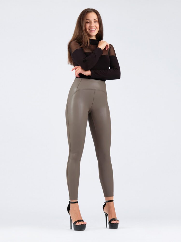 Rose Γκρι Ελαστικό κολάν δερματίνης με ραφές σε διάφορα χρώματα.