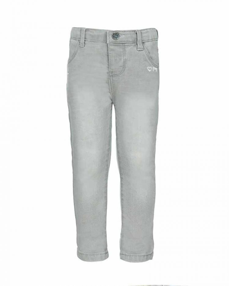 Παιδικό παντελόνι σε ίσια γραμμή, απο τζην ελαστικό ύφασμα, σε γκρι χρώμα, με λάστιχο αυξομείωσης εσωτερικά στην μέση και ειδικές επεξεργασίες.