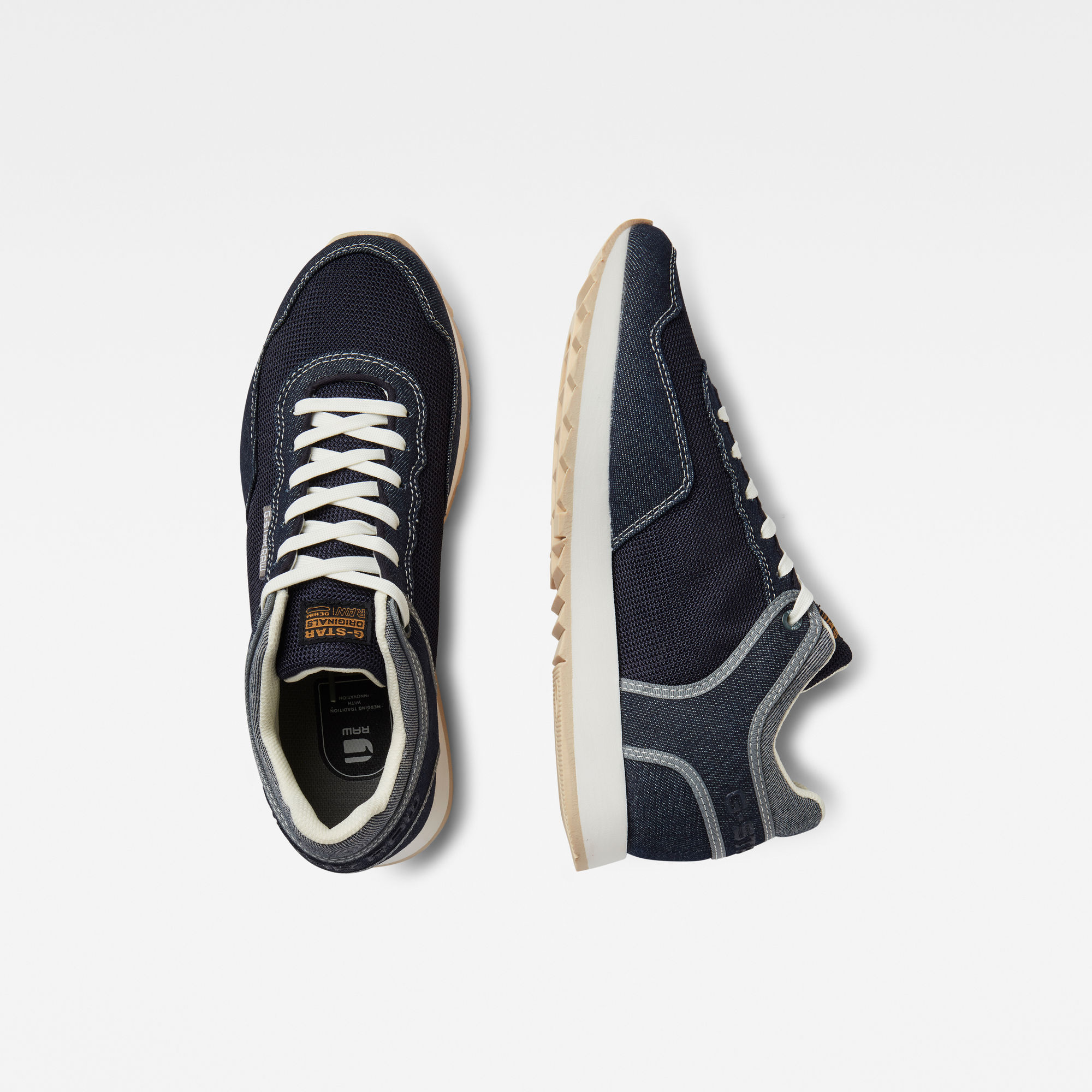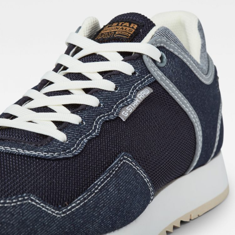 The Y shaped ankle support featured on the ankle merges function with style. Flat laces and a metallic eyelet at the top complete these Calow sneakers. Low cut,Flat laces, reinforced with metallic eyelets at the top,Structured sole,G-Star RAW label caught in the seam and at the tongue These sneakers offer a knitted mesh structured base, combined with denim woven paneling. Cotton 62%, Polyester 38%