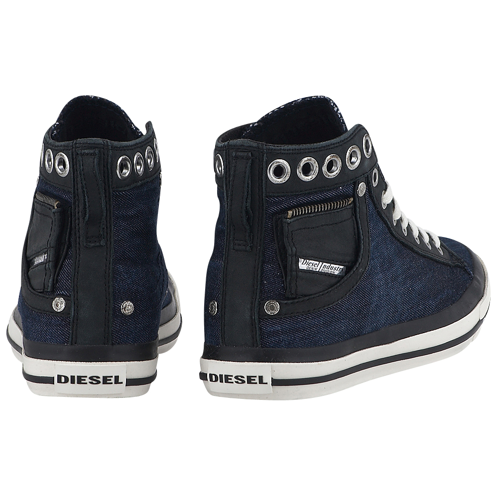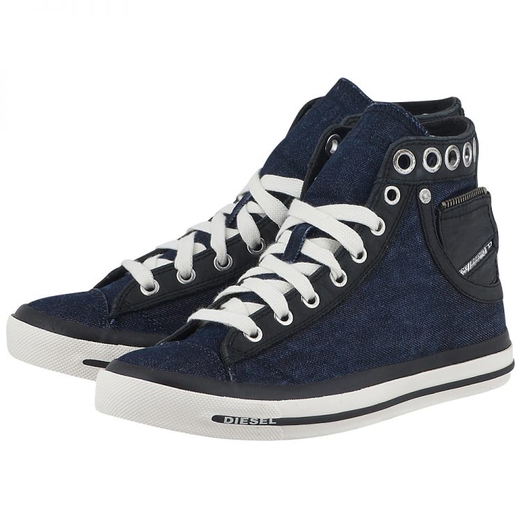 Παπούτσια που δεν θα αποχωρίζεσαι λεπτό, γυναικεία sneakers από μαλακό δέρμα άριστης ποιότητας και τζην ύφασμα, σε μπλε χρώμα, με υφασμάτινη επένδυση και μεταλλικά τρουκς στο κολάρο … γιατί είναι ροκ και φαίνονται 😉 # Diesel. Oίκος με ιστορία, γνωστός για τα denim jeans και όχι μόνο! Aποποιούμενος τα παραδοσιακά πρότυπα λανσάρει ποιοτικά υποδήματα, με καινοτόμα σχέδια και νεανικό αέρα.
