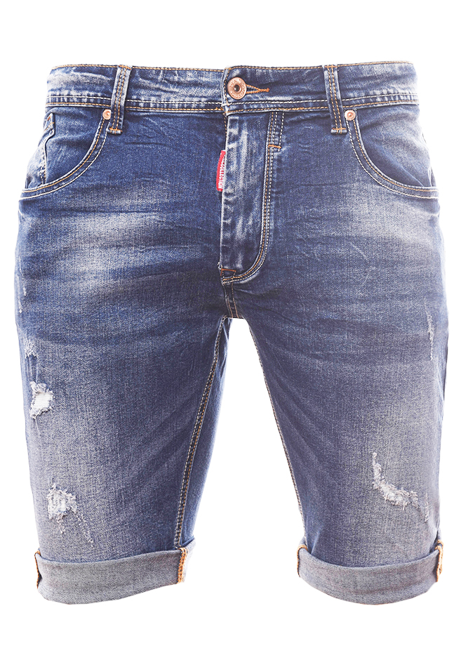 Ανδρική Βερμούδα Jean Art σε μπλε σκούρο χρώμα. Διαθέτει τέσσερις τσέπες εκ των οποίων οι δύο βρίσκονται στο πίσω μέρος. Επίσης, διαθέτει κι ένα μικρότερο τσεπάκι επάνω από την μπροστινή δεξιά τσέπη. Επίσης, διαθέτει και στα δύο πατζάκια τεχνητές φθορές. Τέλος, κουμπώνει με μεταλλικό κουμπί τρουκ και φερμουάρ. Μπορείς να την συνδυάσεις με t-shirt ή polο και να δημιουργήσεις ένα μοντέρνο casual look.