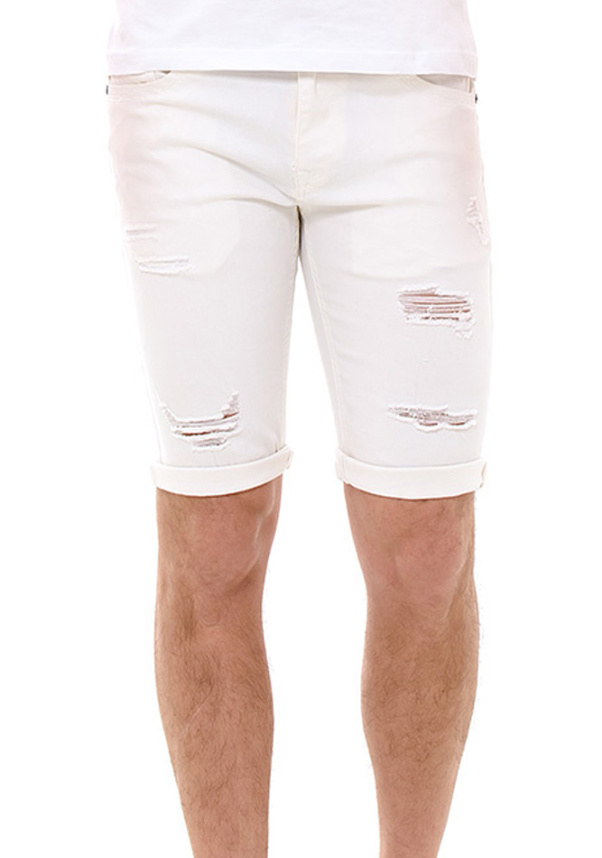 Ανδρική Βερμούδα Jean Blanc σε άσπρο χρώμα. Διαθέτει τέσσερις τσέπες εκ των οποίων οι δύο βρίσκονται στο πίσω μέρος. Επίσης, διαθέτει κι ένα μικρότερο τσεπάκι επάνω από την μπροστινή δεξιά τσέπη. Επίσης, διαθέτει και στα δύο πατζάκια τεχνητές φθορές και σκισίματα. Τέλος, κουμπώνει με φερμουάρ και κουμπί τρουκ. Μπορείς να την συνδυάσεις με t-shirt ή polο και να δημιουργήσεις ένα μοντέρνο casual look για τις καθημερινές σου εμφανίσεις.