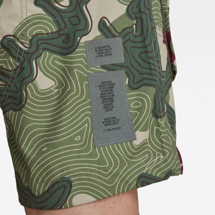 Designed with lots of detailing such as 3D thigh pockets and bounded edges. Woven tabs allow for easy access of the Velcro closed flap pockets. Caught inside the inset pocket, a ticket pocket is created. Pull the woven tape at the inside of the bottom hem when a tighter fit around the knees is preferred. Mid waist,Inset pocket with a coin pocket,3D flap pockets with Velcro closures at the front and back,Adjustable leg width – tape inside,Zip & button closure Semi-compact, 1×1 poplin construction made of fine cotton yarns. Surface has been micro sanded to provide a soft paper touch handfeel. An allover graphic print is added. Poplin plain weave,Sanded finish: soft touch,Allover print,100% Cotton,By buying cotton products from G-Star RAW Raw, you're supporting more sustainable cotton farming.