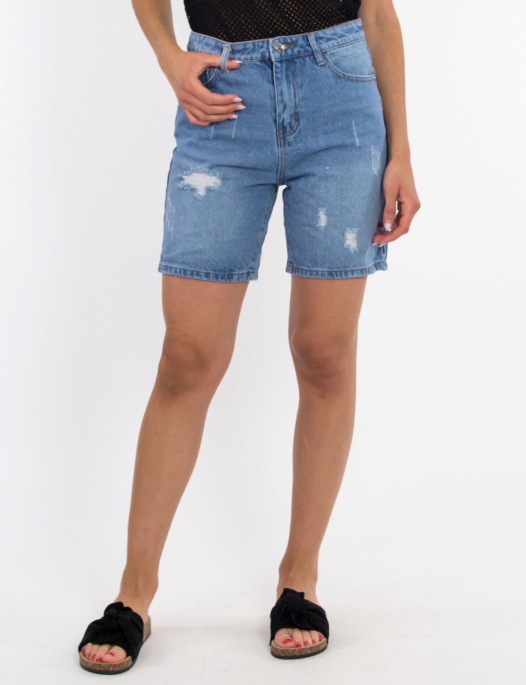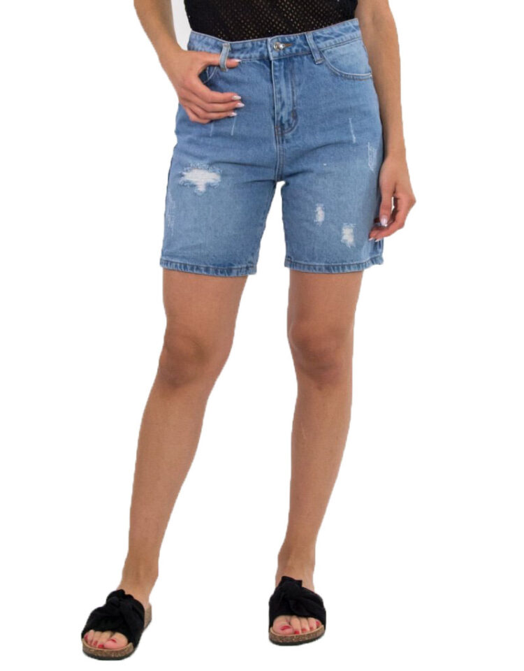 Γυναικεία μπλε τζιν βερμούδα με σκισίματα