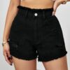 Γυναικείο Μαύρο τζιν ψηλόμεσο σορτσάκι