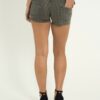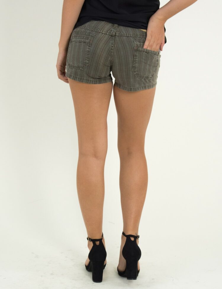 Γυναικείο χακί μεσοκάβαλο τζιν σορτς με ρίγες – Outlet