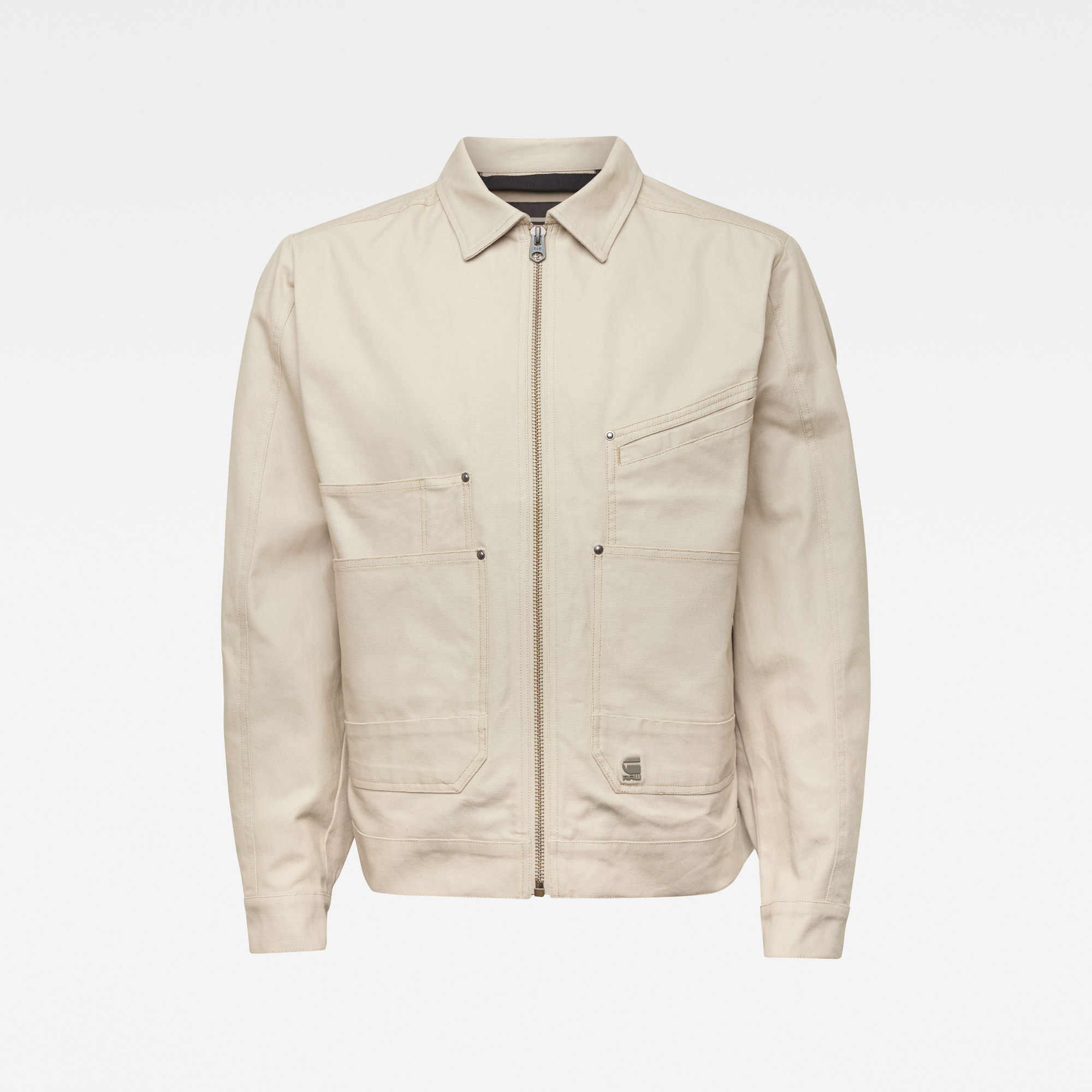 Waist pockets are designed with additional pockets within, where rivets reinforce the pocket corners. A hidden snap is added to the welt pocket. Double shank buttons create adjustability at the back side of the waist and cuffs. An additional pocket with snap and a hanger loop are added to the lined inside. Flat collar,Long sleeves, adjustable cuffs,Waist pockets- additional pockets added within, one hidden snap closure,Adjustable tabs at the back waist,Zipper closure,Lined inside: inner pocket- snap closure, hanger loop A rough woven canvas, offering a matt look. Canvas weave,100% Cotton,By buying cotton products from G-Star RAW Raw, you're supporting more sustainable cotton farming.,Lining body: 100% Polyester