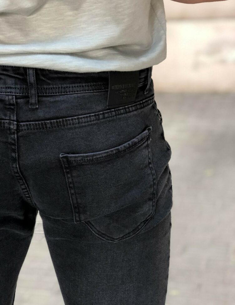 Ανδρικό τζιν παντελόνι σε ανθρακί χρώμα. Είναι πεντάτσεπο και κλείνει με τέσσερα κουμπιά. Ίσια γραμμή στο τελείωμά του. Πολύ στενή εφαρμογή Σταθερό ύφασμα Σύνθεση : 98% cotton, 2% lycra Το μοντέλο έχει ύψος 1.83 και 87 κιλά. Φοράει μέγεθος 36 . Σας προτείνουμε 1 νούμερο μεγαλύτερο από αυτό που επιλέγετε συνήθως.