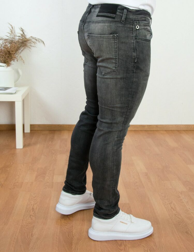 Ανδρικό γκρι ελαστικό τζιν παντελόνι με ξεβάμματα – Huxley & Grace