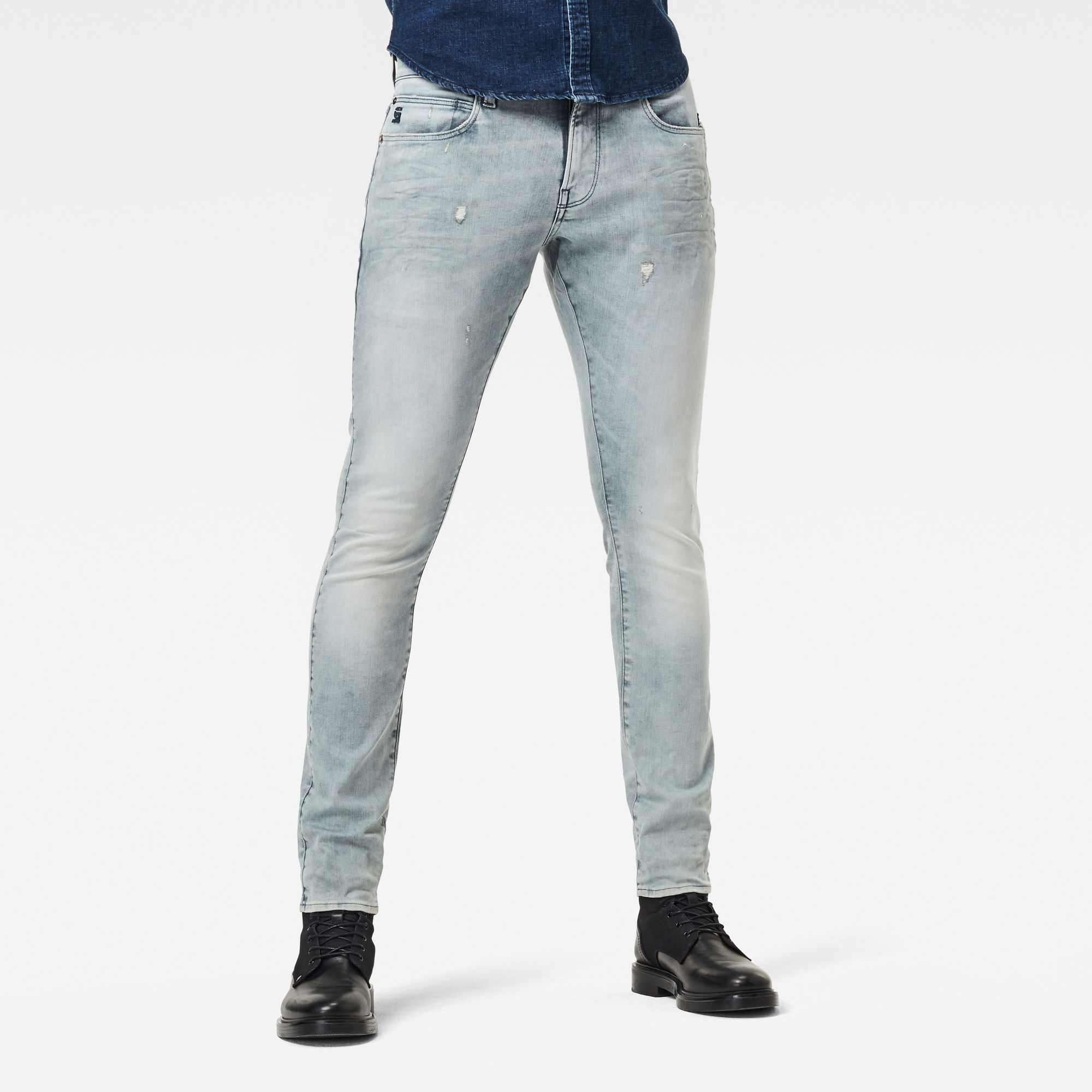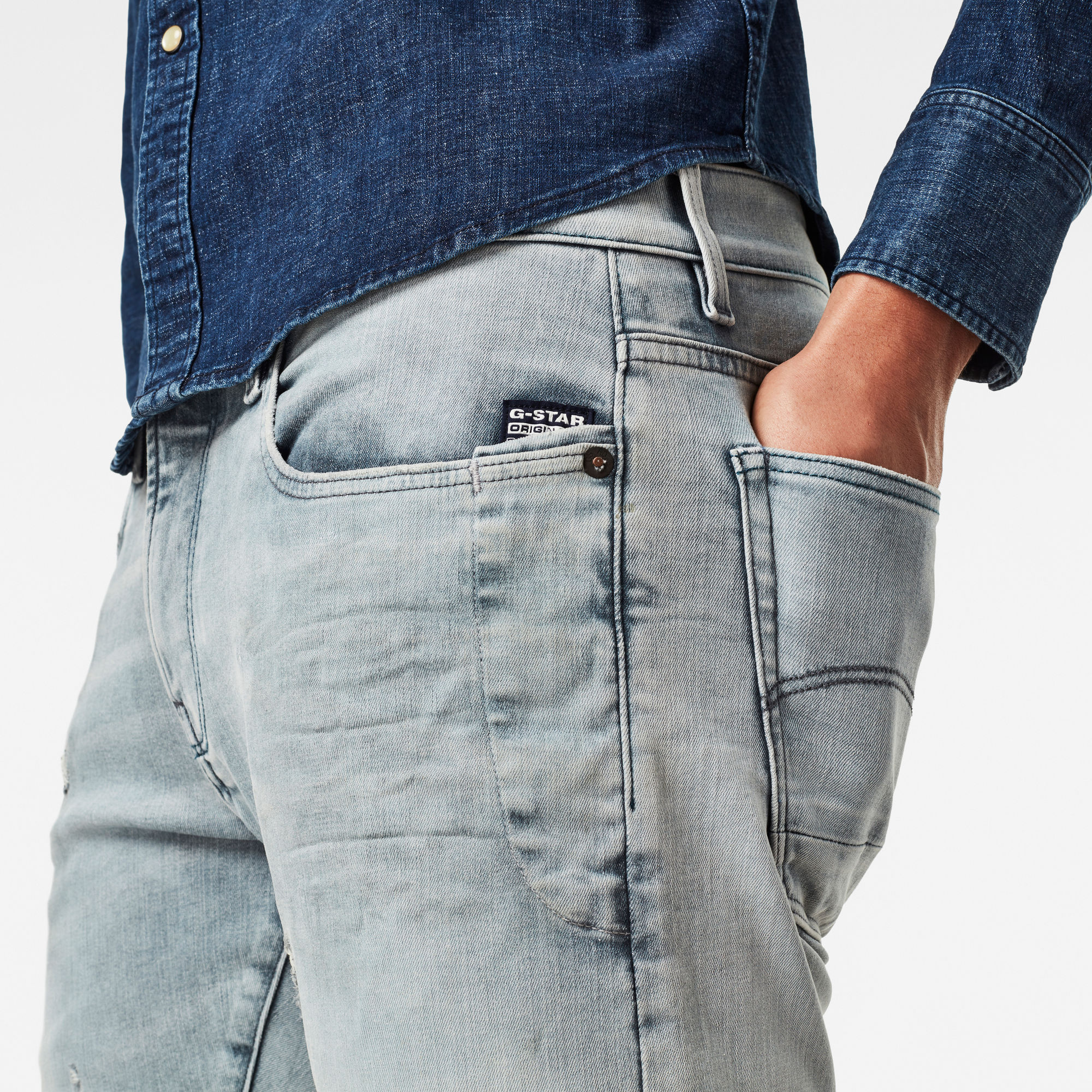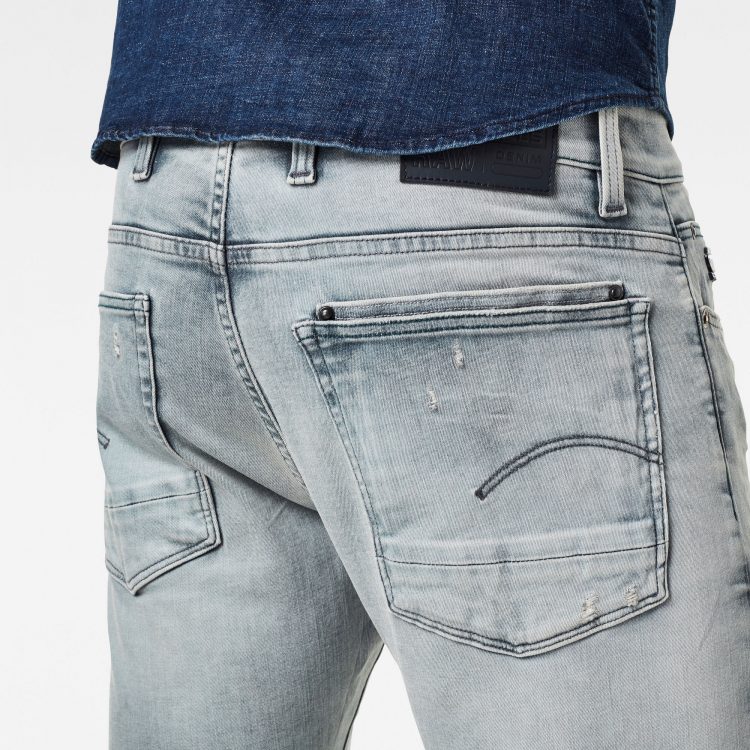 These jeans take a western 5-pocket jeans and combines it with workwear detailing. Additional pockets are created by adding a tool pocket inside the front pocket and creating a double pocket construction at the backside. An utility loop is created at the backside of the waistband. Rivets strengthen the pocket corners. Mid waist,Tight from thigh to hem,Tool pocket added to the front pocket,Additional pocket added to one of the back pockets,Loop added to the backside waistband,Zip fly This superstretch denim fabric has a rich vertical slub character. It's dyed in grey with a subtle blue cast. 10.25 oz denim,3×1 right hand twill,Offers luxurious handfeel, excellent stretch and recovery thanks to the clever blend of high quality fibers and yarns.,92% Cotton, 6% Polybutylene Terephthalate, 2% Elastane,By buying cotton products from G-Star RAW Raw, you're supporting more sustainable cotton farming.