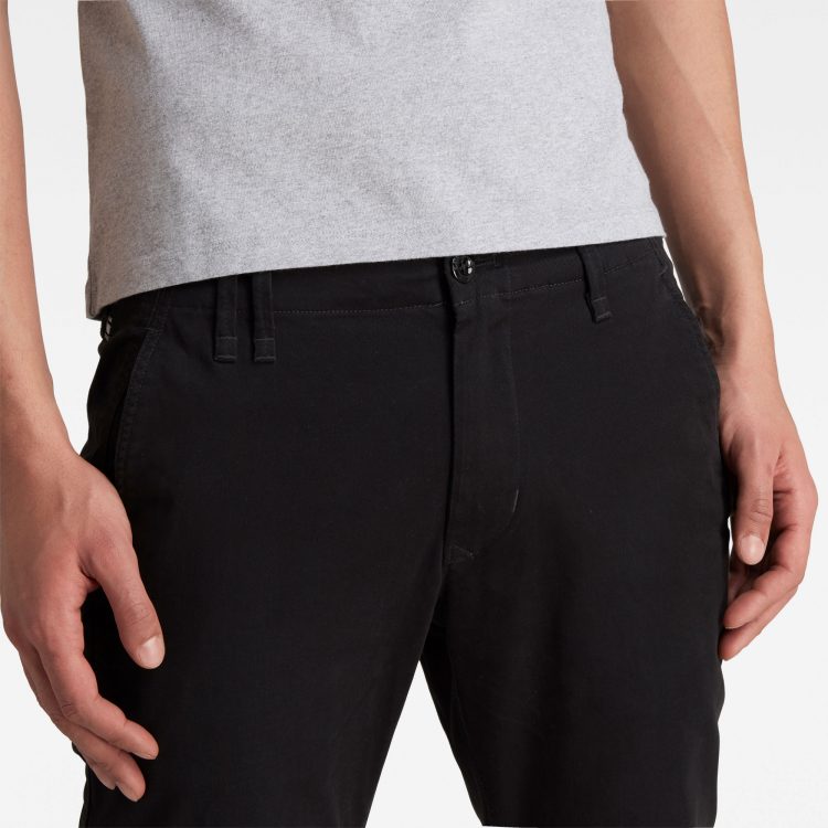 The inset pockets are finished with a double stitch around, reinforced with bartacks on each side. At the back panel, slim welt pockets are combined with a smaller pocket for your phone. Shaped seams at back hip and inner knee create the slim fit. Fitted waistband,Slim legs,Front: inset pockets. Back: slim, double welt pockets and a single welt phone pocket,Shaped seams at hip and inner knee create an enhanced fit,Zip & button closure,G-Star RAW at the inset pocket This twill woven is developed with a good amount of elastane to create a comfortable stretch and recovery. Stretch woven,Stretch for ease of movement,97% Cotton, 3% Elastane,By buying cotton products from G-Star Raw, you're supporting more sustainable cotton farming through the Better Cotton Initiative. Better Cotton is sourced via a system of Mass Balance. Find out more about our sustainable materials.