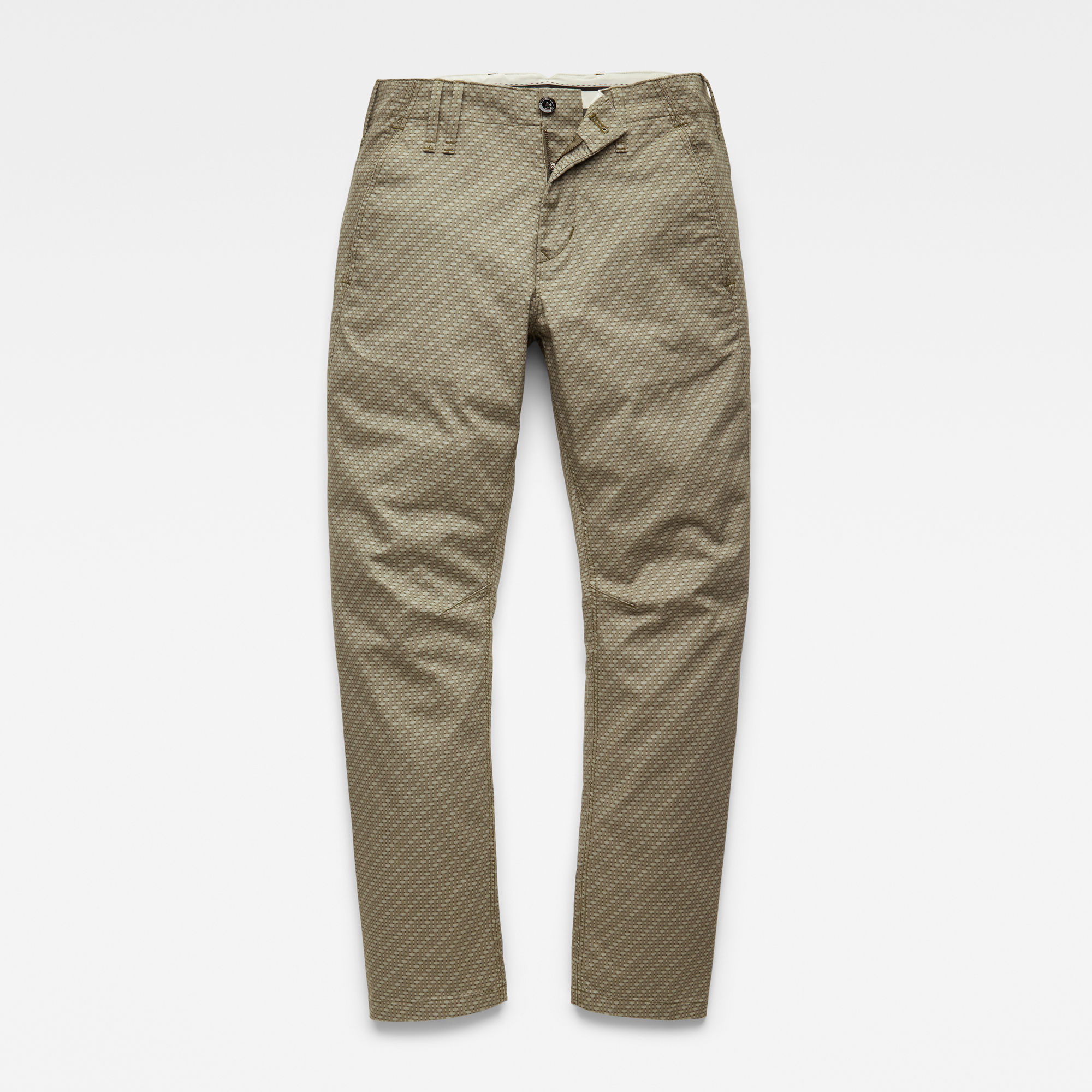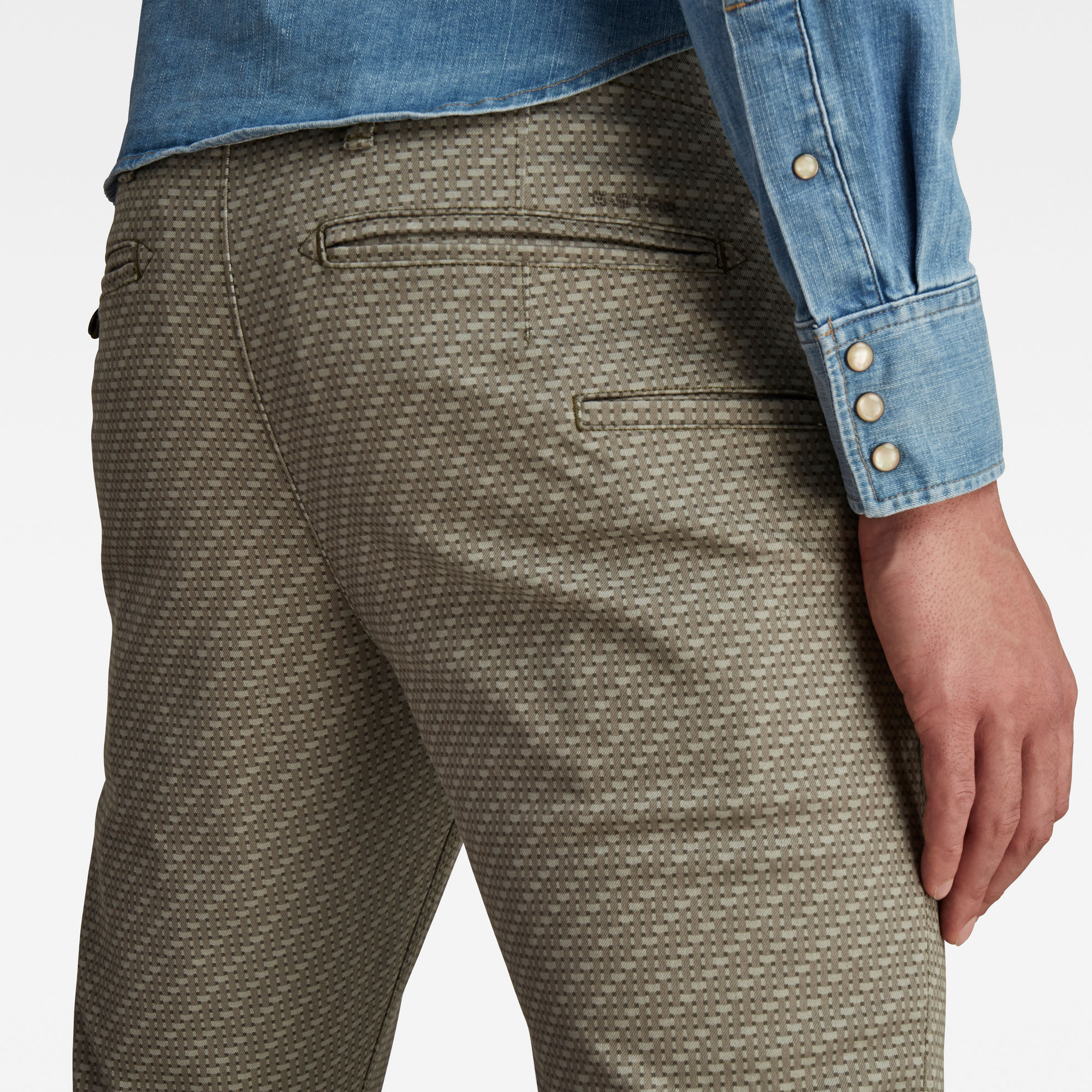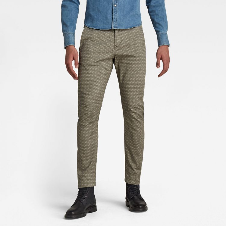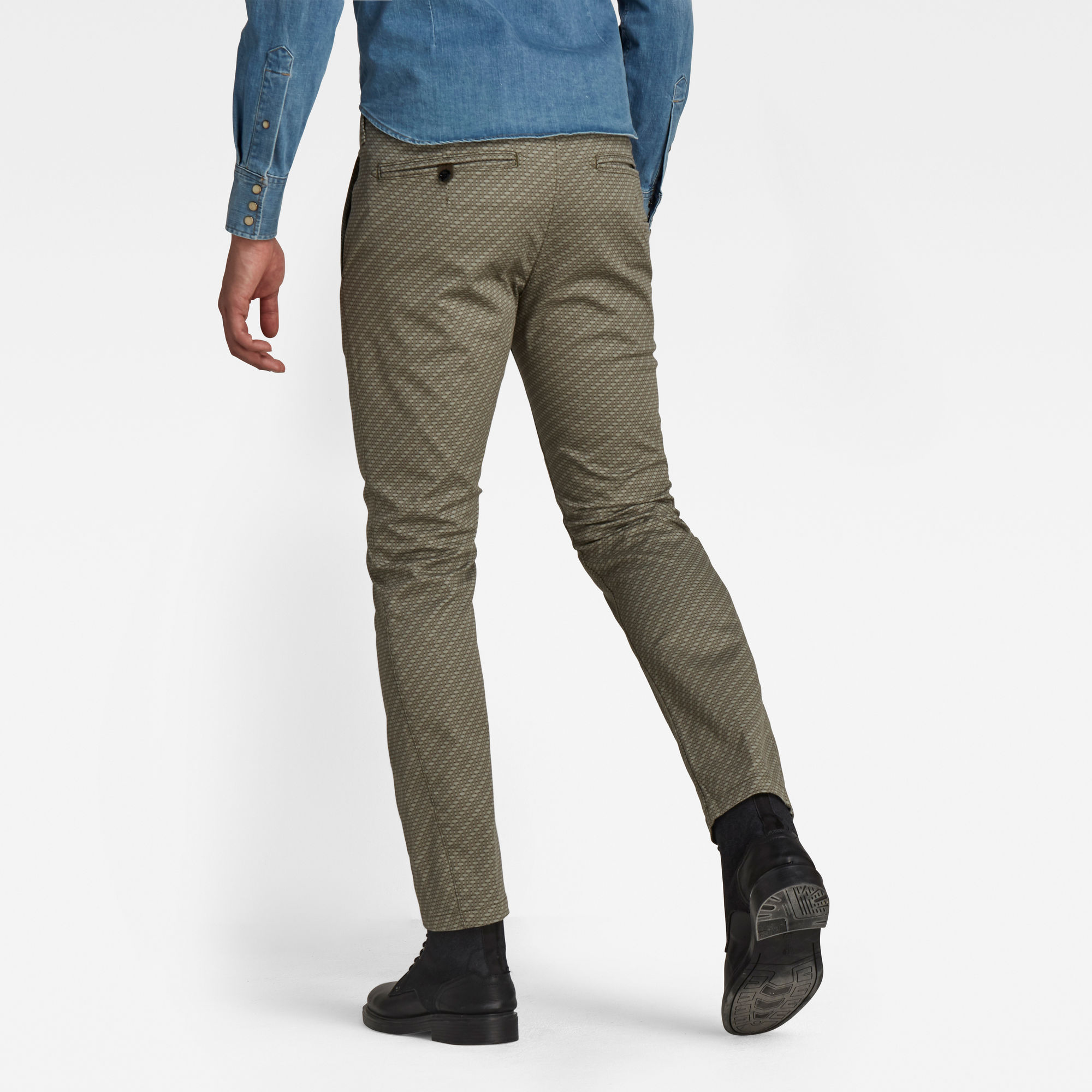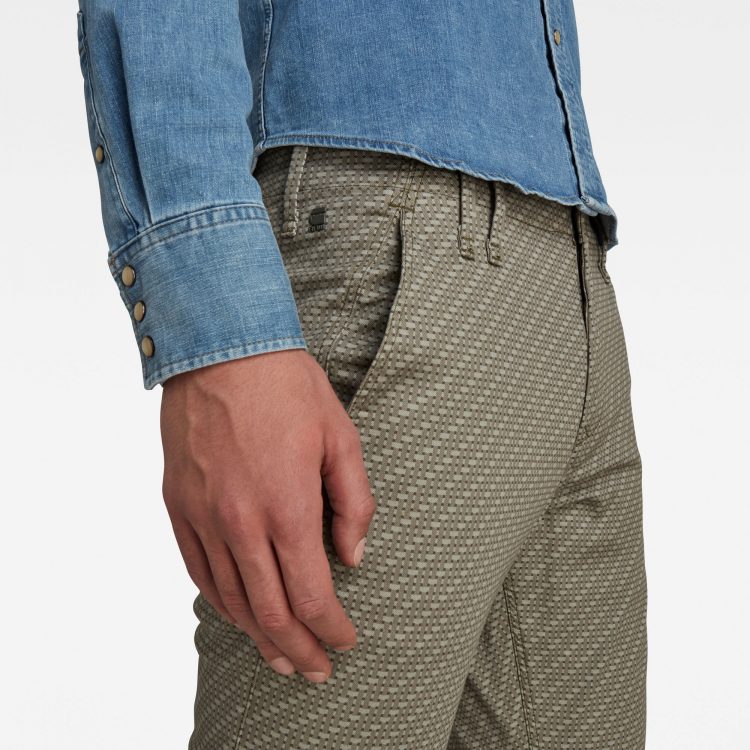 The inset pockets are finished with a double stitch around, reinforced with bartacks on each side. At the back panel, slim welt pockets are combined with a smaller pocket for your phone. Shaped seams at back hip and inner knee create the slim fit. Mid waist,Slim legs,Front: inset pockets. Back: slim, double welt pockets ( one side button closure) and a single welt phone pocket,Shaped seams at hip and inner knee create an enhanced fit,Zip & button closure,G-Star RAW metallic logo at the inset pocket This twill woven is developed with a good amount of elastane to create a comfortable stretch and recovery. An allover print is added. Stretch woven,Added stretch, ease of movement,Allover printed,97% Cotton, 3% Elastane,By buying cotton products from G-Star RAW Raw, you're supporting more sustainable cotton farming.