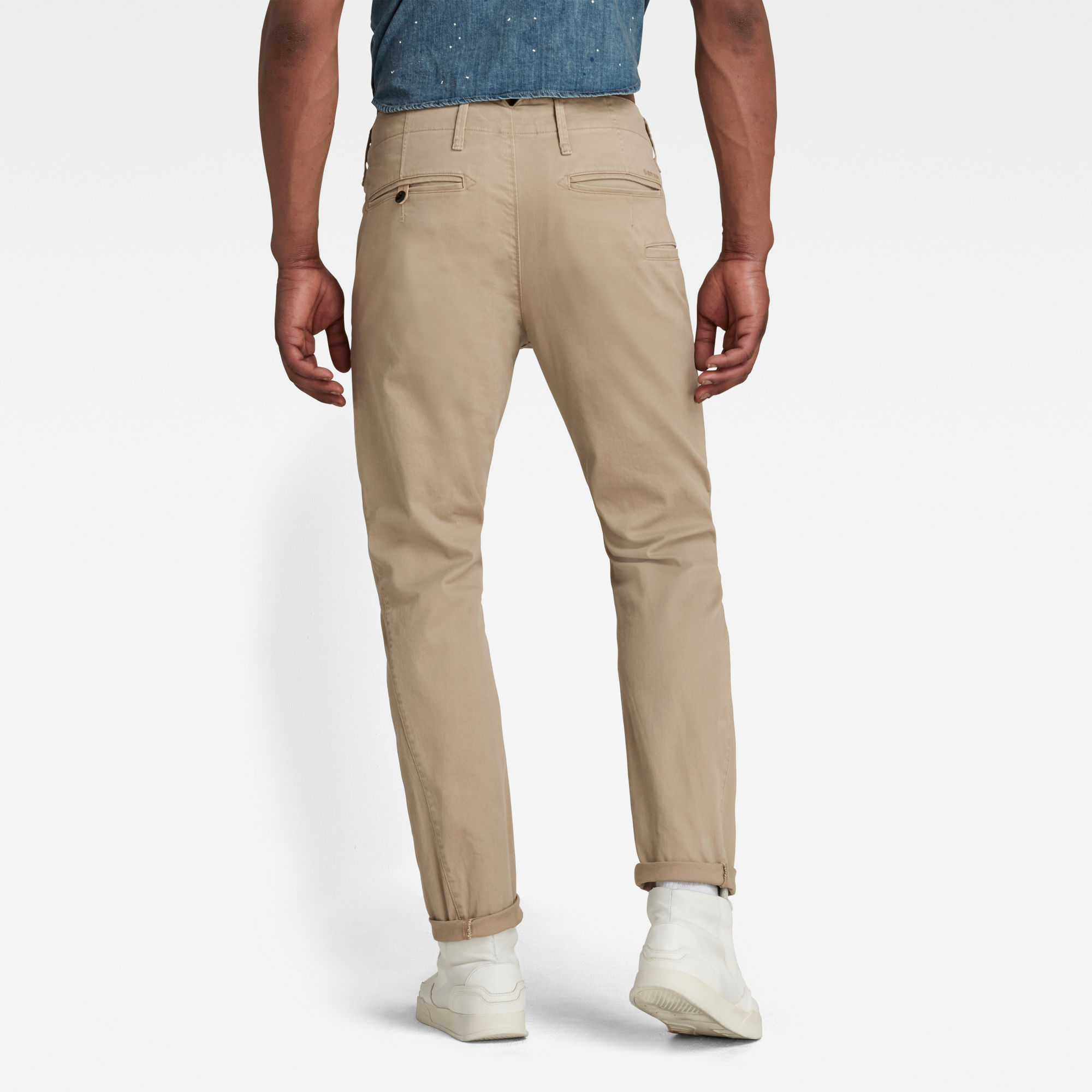The inset pockets are finished with a double stitch around, reinforced with bartacks on each side. At the back panel, slim welt pockets are combined with a smaller pocket for your phone. Shaped seams at back hip and inner knee create the slim fit. Fitted waistband,Slim legs,Front: inset pockets. Back: slim, double welt pockets and a single welt phone pocket,Shaped seams at hip and inner knee create an enhanced fit,Zip & button closure,G-Star RAW at the inset pocket This twill woven is developed with a good amount of elastane to create a comfortable stretch and recovery. Stretch woven,Stretch for ease of movement,97% Cotton, 3% Elastane,By buying cotton products from G-Star Raw, you're supporting more sustainable cotton farming through the Better Cotton Initiative. Better Cotton is sourced via a system of Mass Balance. Find out more about our sustainable materials.