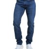 Ανδρικό τζιν παντελόνι σε απόχρωση μπλε σκούρο με επεξεργασία ξεβάμματος και καφέ ραφές. Κλείνει με φερμουάρ και έχει ελαστικότητα. Είναι πεντάτσεπο μεσοκάβαλο και διαθέτει δερμάτινο λογότυπο της εταιρείας Κανονική η εφαρμογή του ΣΥΝΘΕΣΗ: 99% cot, 1%el. *Το μοντελο έχει ύψος 1,81 και βάρος 80 κιλά. Φοράει μέγεθος 32.