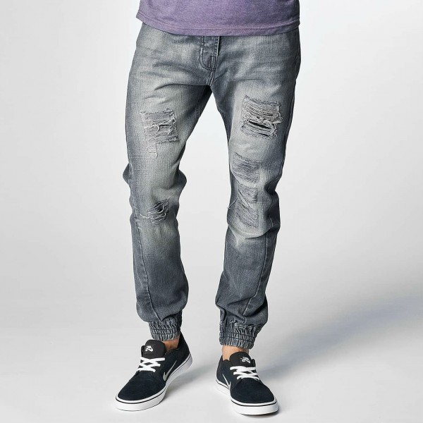 Ανδρικό παντελόνι jeans με ξεβάματα & γδαρσίματα σε greyblue χρώμα για casual εμφανίσεις με λάστιχο στα μπατζάκια. Ένα στυλάτο τζιν παντελόνι για την καθημερινότητά σου.