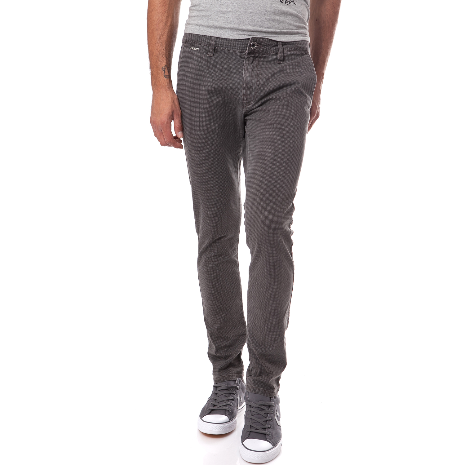 Βαμβακερό παντελόνι με σχέδια κατά μήκος του, skinny γραμμή σε γκρι σκούρο χρώμα και τσέπες στο μπροστινό και πίσω μέρος.