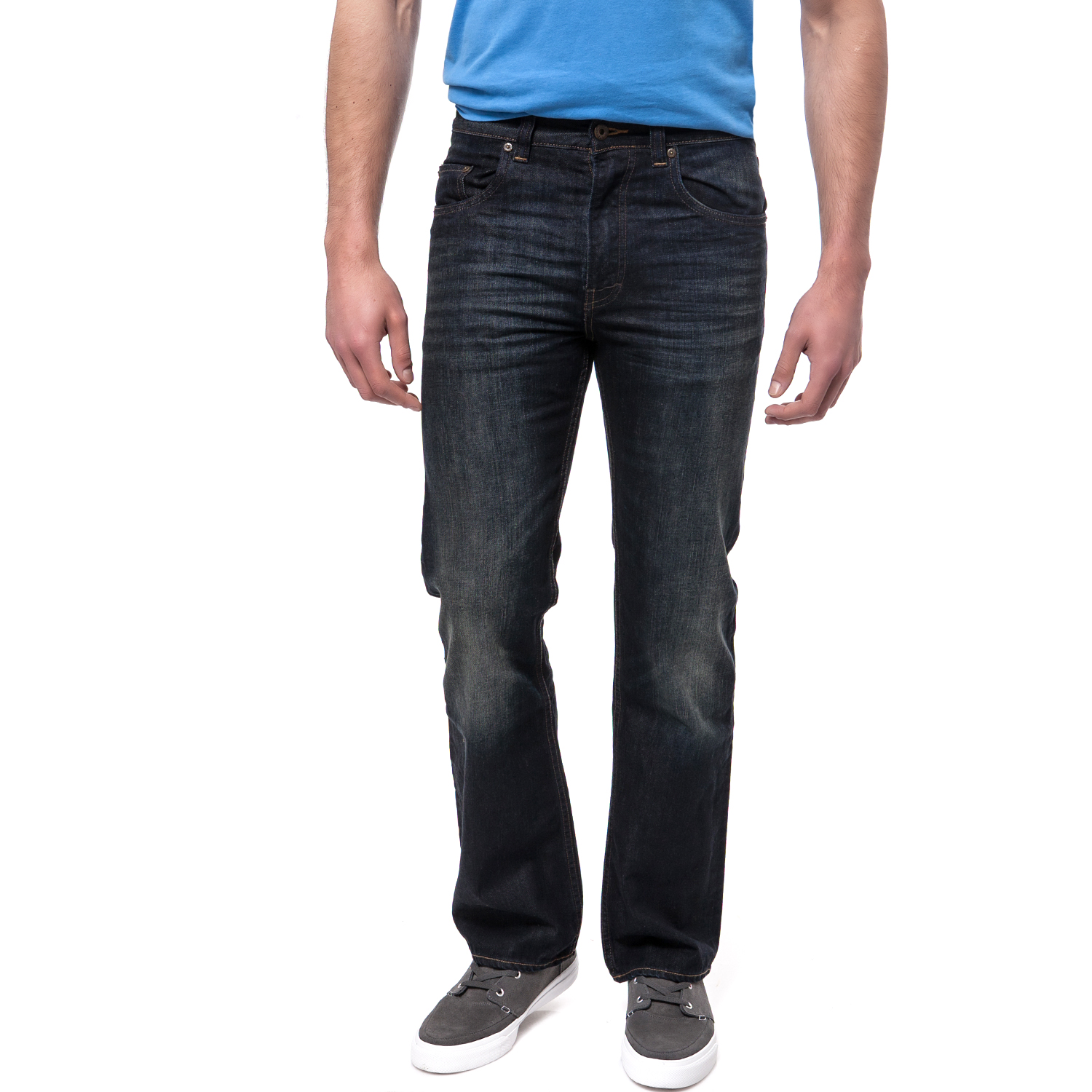 Βαμβακερό τζιν παντελόνι σε μπλε σκούρα απόχρωση, ξεβάμματα και τσέπες στο μπροστινό και πίσω μέρος. Εχει ίσια γραμμή.