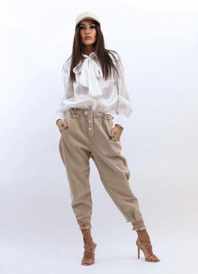 Ψηλόμεσο jean με λάστιχο στη μέση – Μπεζ