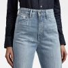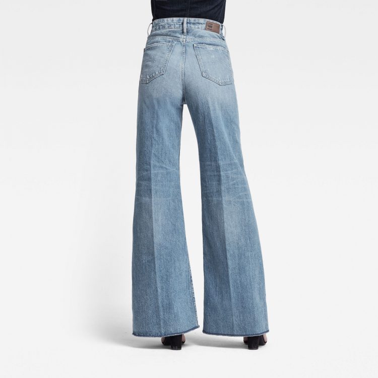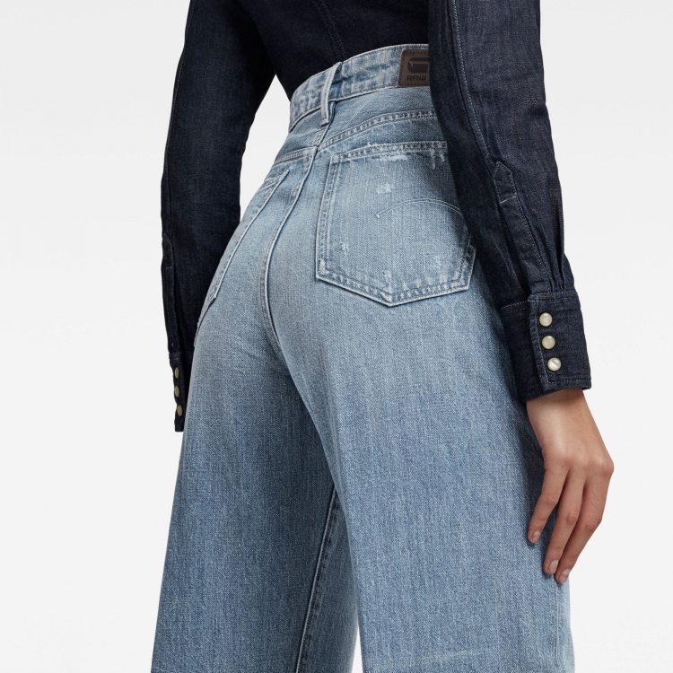 This new blueprint is based on the sailors' clothing in the late 18th century. Sailors scrubbing and whitening the wooden ship decks wore wide pants that allowed to move freely. The G-Star RAW Raw Deck jeans are designed to fit smoothly around the waist and hips and open up to a wide leg. The hem is easy to trim. As it's kept unfolded, you can shorten it to your perfect length if needed. Combine them with high heels to make it complete. Ultra high waist,5 pocket construction, welt coin pocket inserted below waistband,Fitted around the hip, widens from thigh towards the hem,Hem is easy to trim. As the hem is kept unfolded, you can create your own preferred length. Or just keep it as is.,Zip & button closure,Cow leather label at the back side waist This is a 3rd edition of the World's 1st Cradle to Cradle Certified™ Gold G-Star RAW Denim Fabric which was initially released in February 2018. This 2.0 version is still a unisex quality with an oz update to its weight and re-freshed, more dynamic denim character. Developed with RFTPi-Raw for the Planet Indigo-world’s cleanest indigo dyeing process, formulated in partnership with DyStar®, G-Star RAW and Artistic Milliners.,Raw for the Planet Indigo uses 15% less indigo, 70% less chemicals, no salts, and produces no salt by-product during reduction and dyeing process, consequently saving water and leaving clean and recyclable water effluent.,100% Organic cotton,Organic cotton fibers are free of toxic pesticides and chemical fertilizers. Growing organic cotton helps to improve soil quality, prevents water contamination and conserves biodiversity. By choosing organic cotton, we can save up to 60% water.,8 dip indigo, 3×1 right hand twill construction, Mid weight 11.5 oz denim,Fabric chemistry with 0 risk for people and the environment