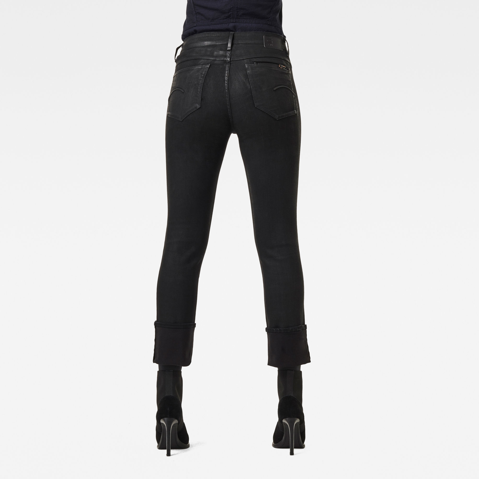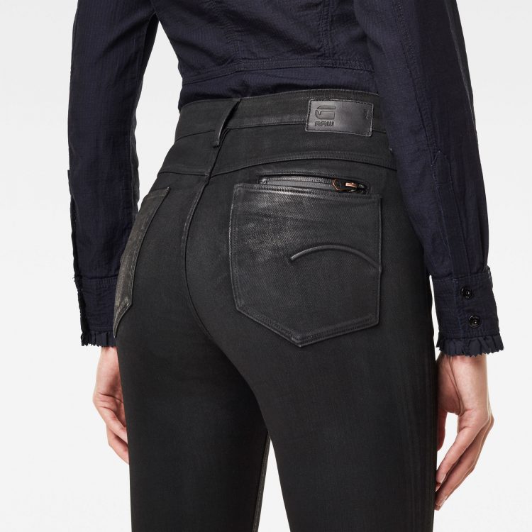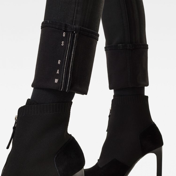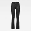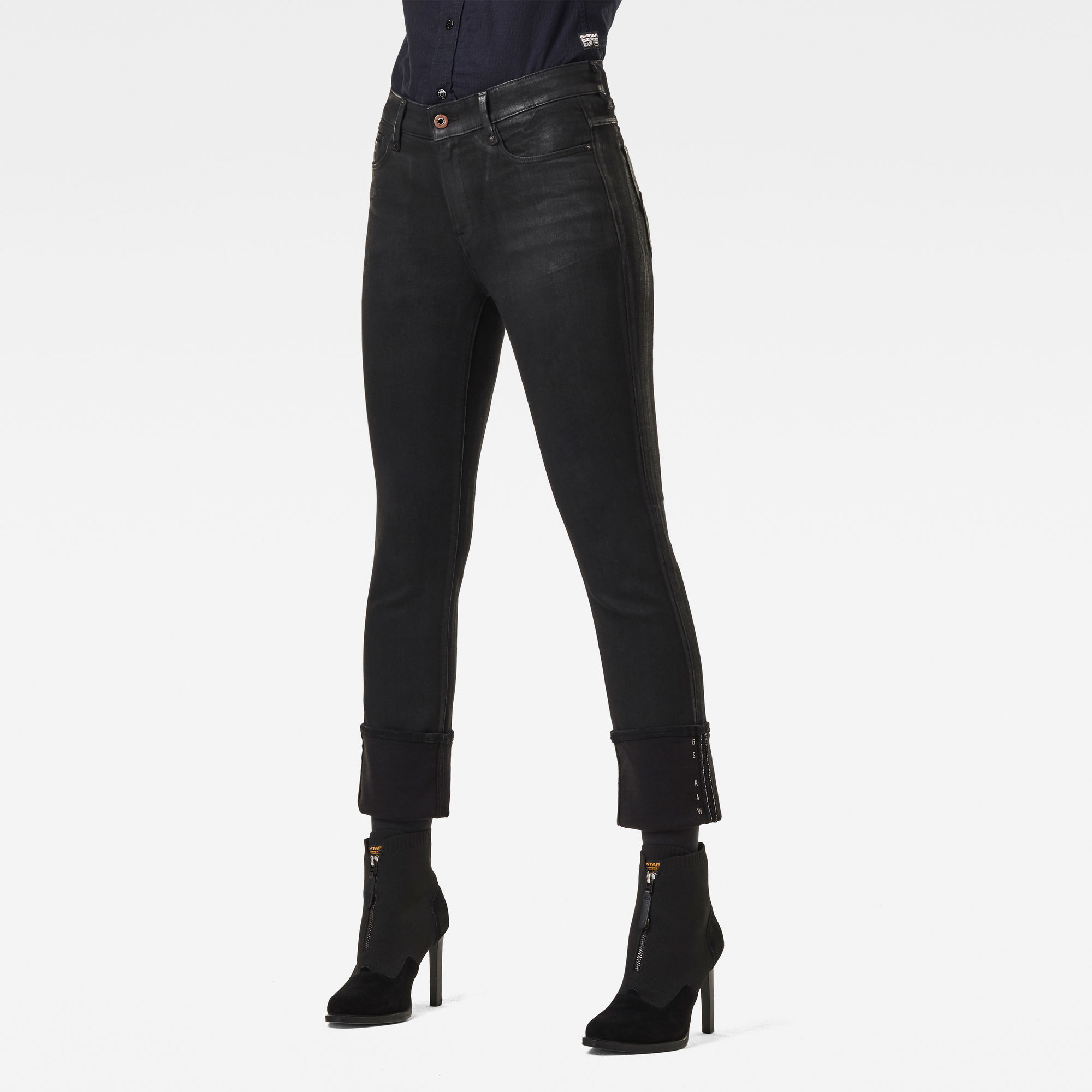Well thought out pocket placements and seam positioning create a flattering fit. Details are added by the turn-up leg hem and the additional zip pocket inside one of the back pockets. Mid waist,5-pocket construction, coin pocket with welt,Back pockets- additional zipper pocket inside,Straight through the legs,Zip fly A deep black denim with sustainable stretch fibers, partially made from recycled and renewable resources. Due to the added technical yarns, the shape of the garment will remain wear after wear. This style is dyed with sustainable black dye Diresul RDT from Archroma. 10.2 oz denim, 3×1 Right hand twill construction,Excellent stretch, over 35% and superb recovery,The black is derived from Archroma's sustainable Diresul RDT dyestuff.,92% Cotton, 7% Elastomultiester (T400® EcoMade), 1% Elastane (Lycra®),The LYCRA® fibers we use are high performance stretch fibers which hold a Gold Level Material Health Certificate from the Cradle to Cradle Products Innovation Institute.,By buying cotton products from G-Star Raw, you're supporting more sustainable cotton farming through the Better Cotton Initiative. Better Cotton is sourced via a system of Mass Balance. Find out more about our sustainable materials.